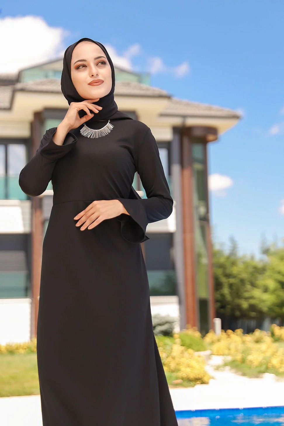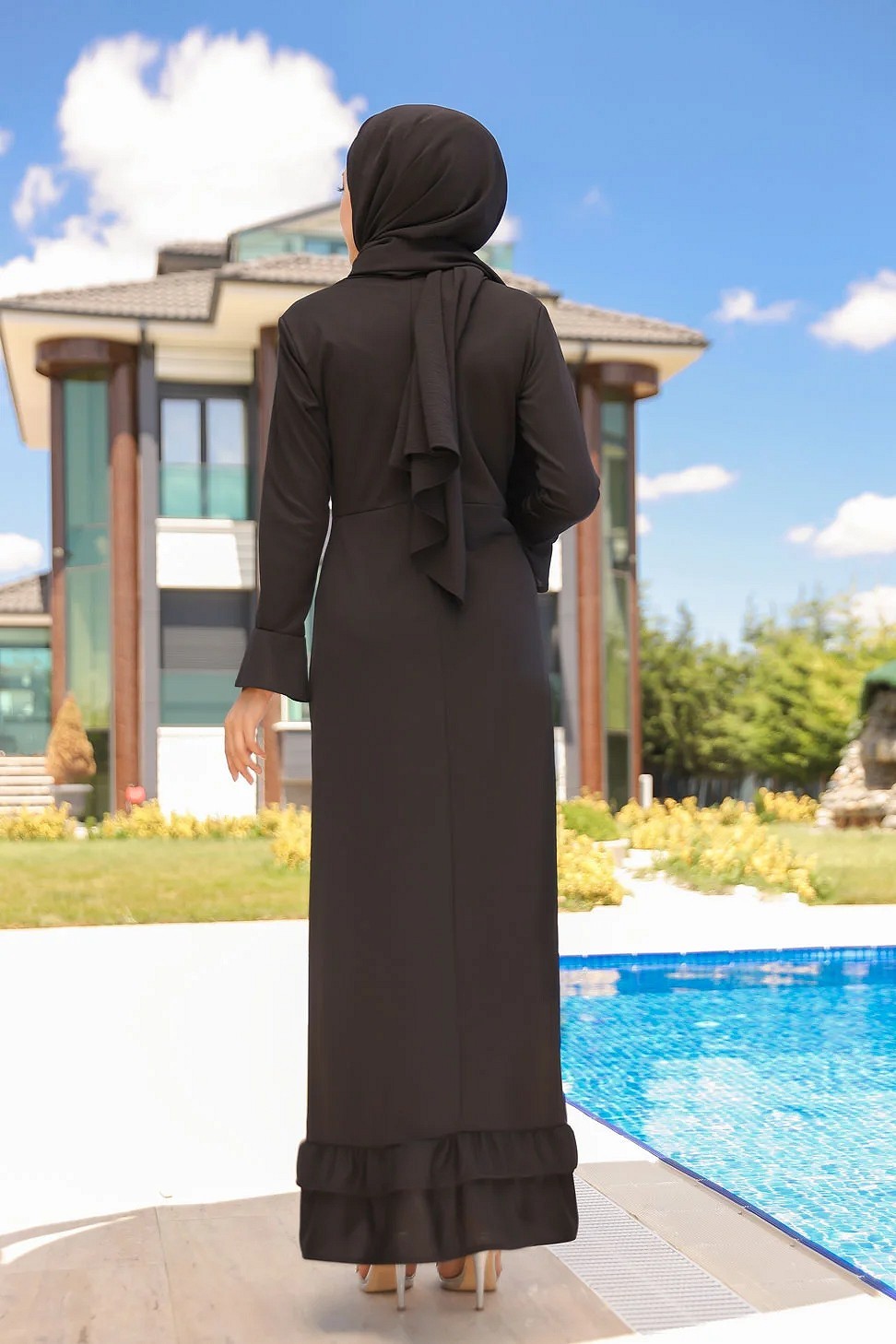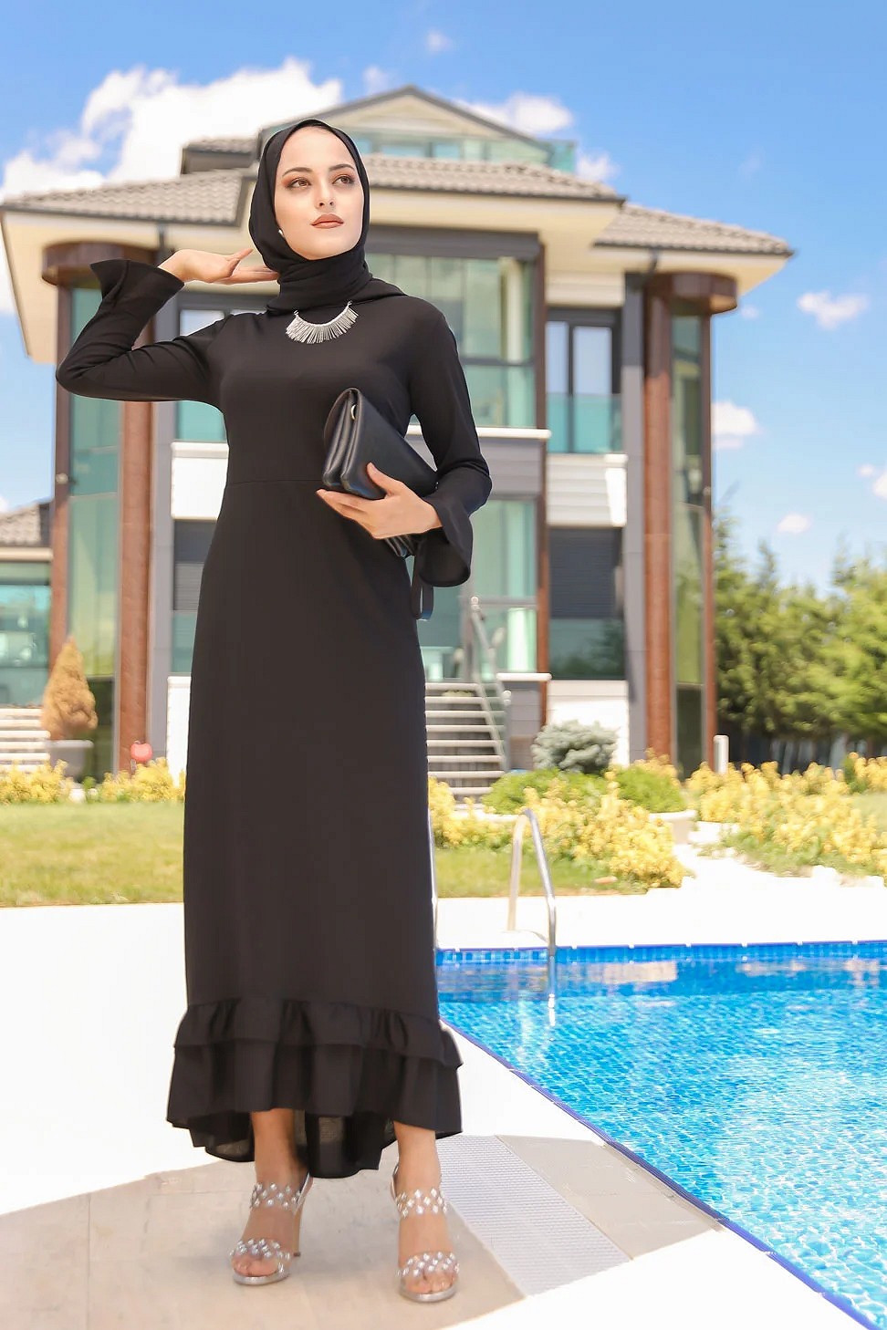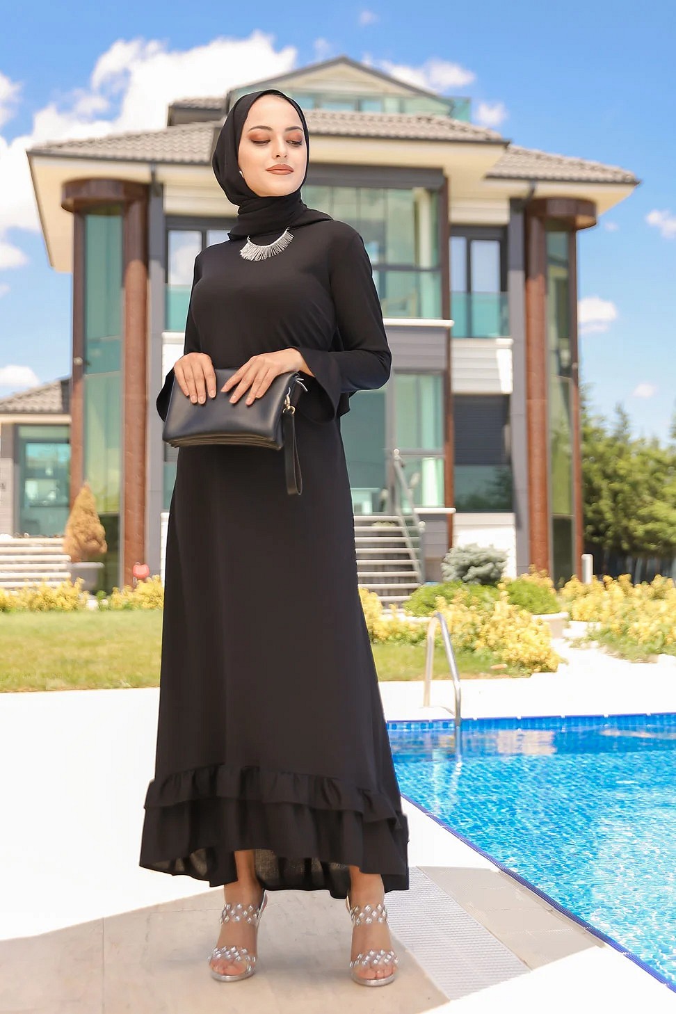 Robe longue a volants (Abaya chic Mode musulmane) - Couleur noir