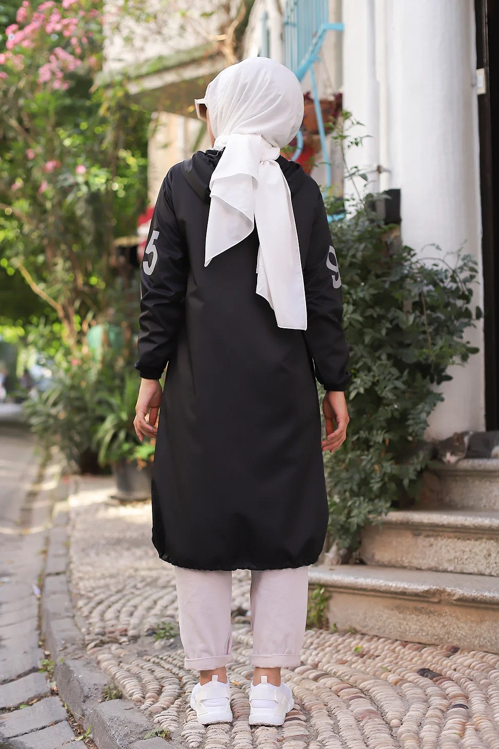 Tunique longue en coton type sportswear avec capuche - Couleur Noire et Blanc cassé - REF. 33507 (28.00 €)