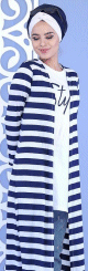 Tunique à rayures avec ceinture pour femme (Boutique Hijab en ligne - France) - Couleur bleu ciel - REF. 35754 (19.00 €)