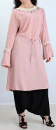Tunique Longue à poignets cloche avec pompons - Couleur Rose Clair - REF. 31902 (24.90 €) - En Promotion à 19.90 €