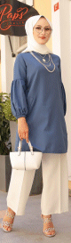 Tunique habillée à manche bouffante pour femme (Vetement de ville pour hijab) - Couleur bleue indigo - REF. 33112 (19.90 €)