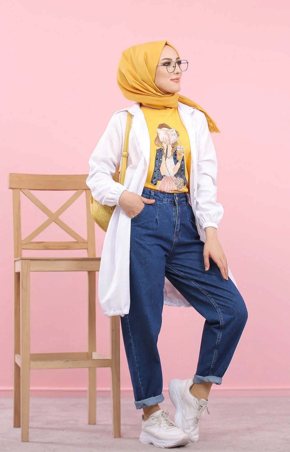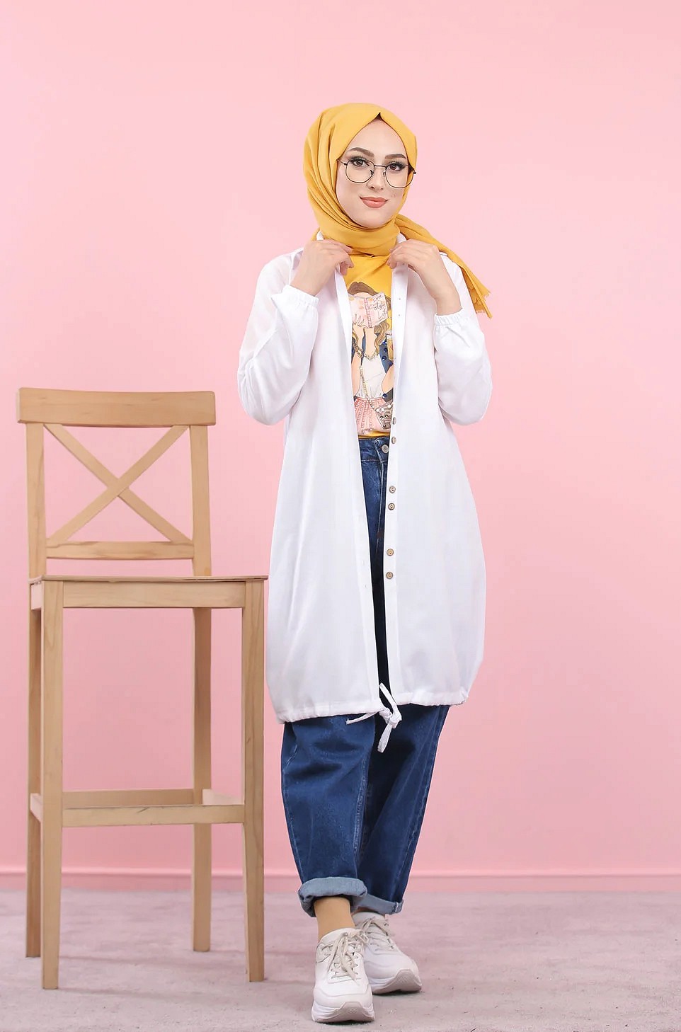 Tunique-Chemise ample boutonnée (Vetement décontracté femme voilée) - Couleur blanche Vetement & Accessoire