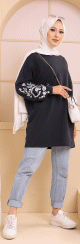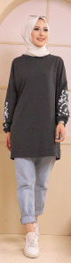 Tunique décontractée avec manches à motif fleurs (Tenue Hijab pour femme musulmane) - Couleur anthracite - REF. 35300 (23.00 €)
