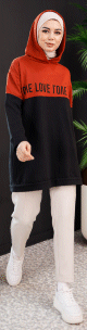 Tunique avec capuche (Boutique en ligne Hijab moderne pour femme) - Couleur brique - REF. 38317 (19.90 €) - En Promotion à 16.90 €