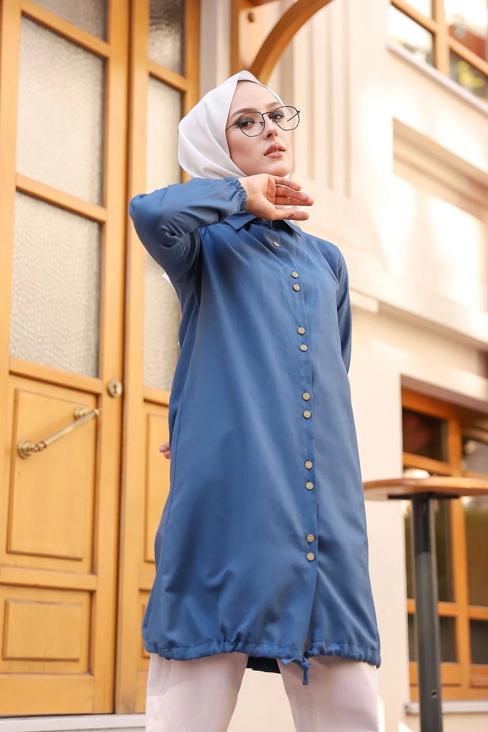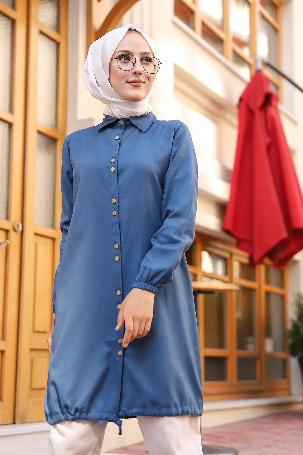Tunique-Chemise ample boutonnee (Vetement decontracte femme voilee) - Couleur bleu