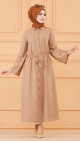 Robe casual avec ceinture intégrée pour femme (Boutique en ligne Hijab & Mode Musulmane France) - Couleur beige - REF. 36427 (35.00 €)