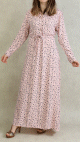 Robe longue 4 saison avec manches retroussables pour femme - Couleur Rose clair à motifs noirs fleuris - REF. 31634 (28.00 €)