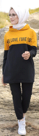 Survêtement hijab sport chic à capuche pour femme musulmane (deux pièces haut et bas) - Couleur noir et moutarde - REF. 33888 (25.00 €)