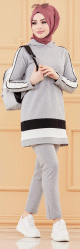 Ensemble survêtement pour femme : Tunique à capuche et Pantalon (Tenue sport Hijab) - Couleur gris clair - REF. 36382 (32.00 €)