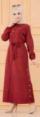 Robe longue boutonnée avec ceinture pour femme (Vêtement style habillé pour hijab) - Couleur bordeaux - REF. 36619 (32.00 €)