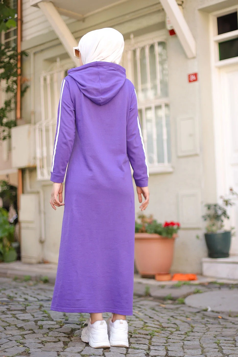 Robe longue sweat-shirt à capuche en coton (Hijab Sport pour femme) - Couleur violet Vetement & Accessoire