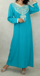 Robe oriental longue à strass et broderies en coton pour femme - Couleur Bleu canard - REF. 33562 (25.00 €)