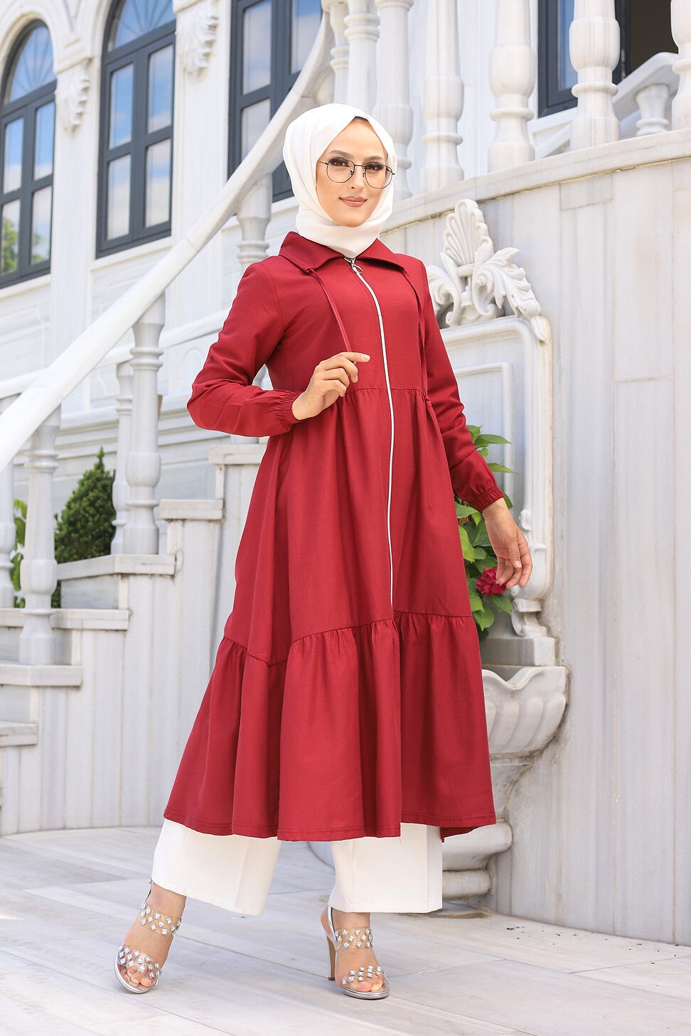 Veste zippée légère mi longue (Vetement ample pour femme voilée) - Couleur rouge bordeaux Vetement & Accessoire