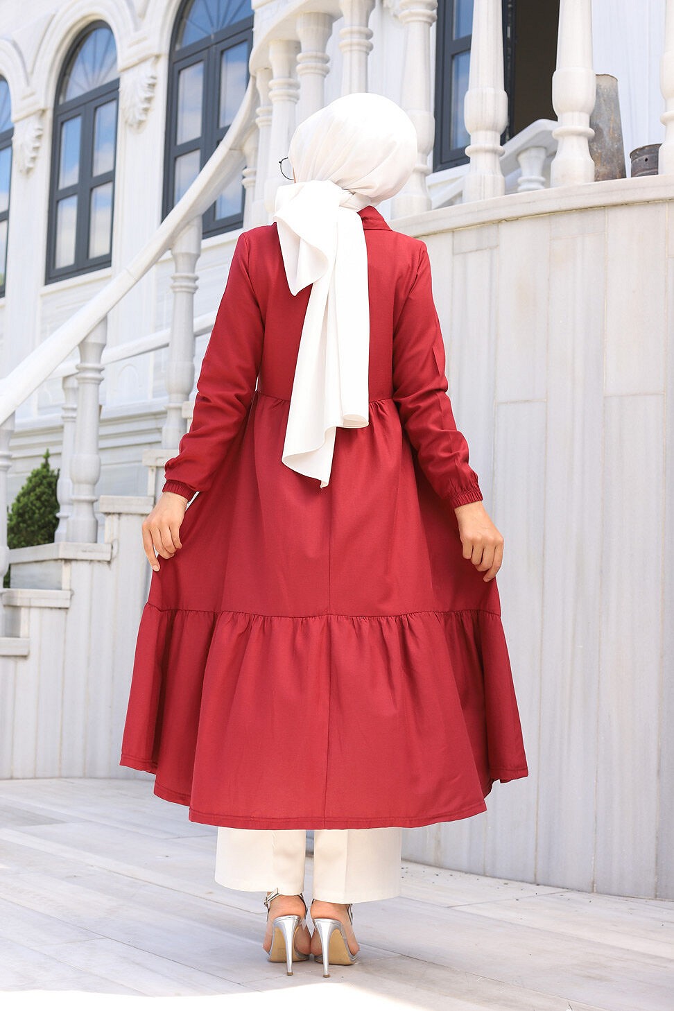 Tunique ample évasée boutonnée (Vetement style habillé pour femme voilée) - Couleur Rouge Bordeaux - REF. 33821 (22.00 €)