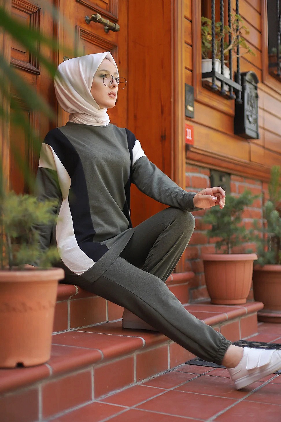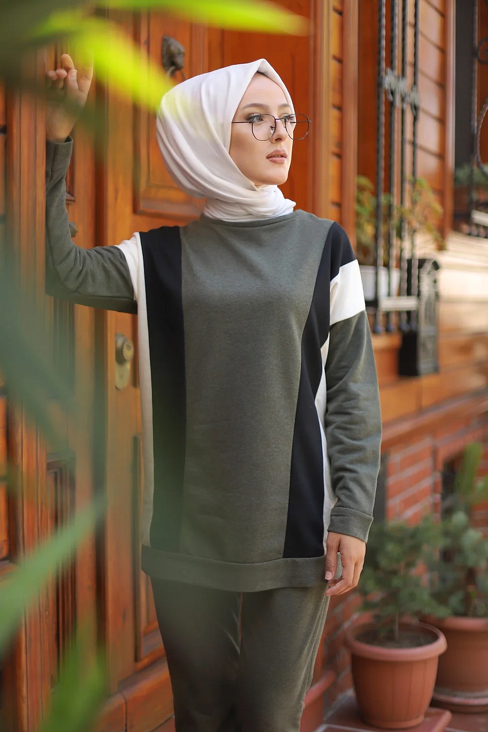 Ensemble 2 pièces pour femme voilée. Haut mi long, coupe droit. Pantalon taille élastique, coupe droite. Matière sweat.