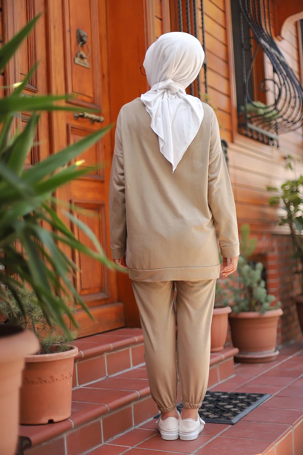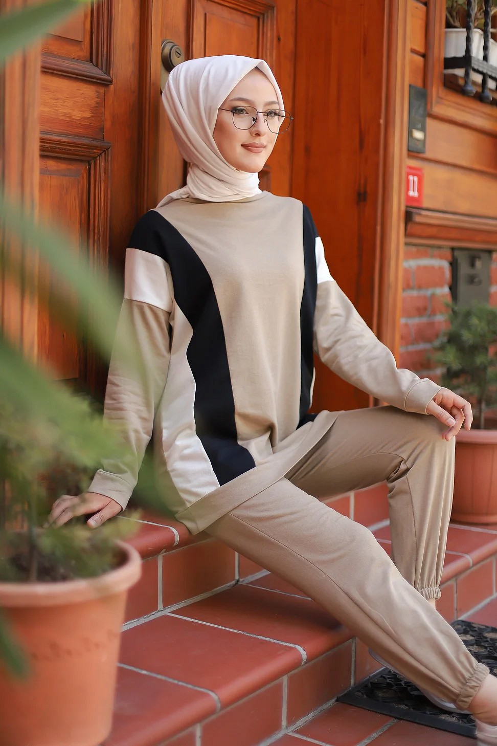 Ensemble 2 pièces pour femme voilée. haut mi long, coupe droit, pantalon taille élastique, coupe droite. Matière sweat.