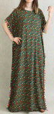 Robe d'été à fleurs avec pompons multicolores - Gandoura femme manche courte - Couleur Vert - REF. 31617 (19.90 €)