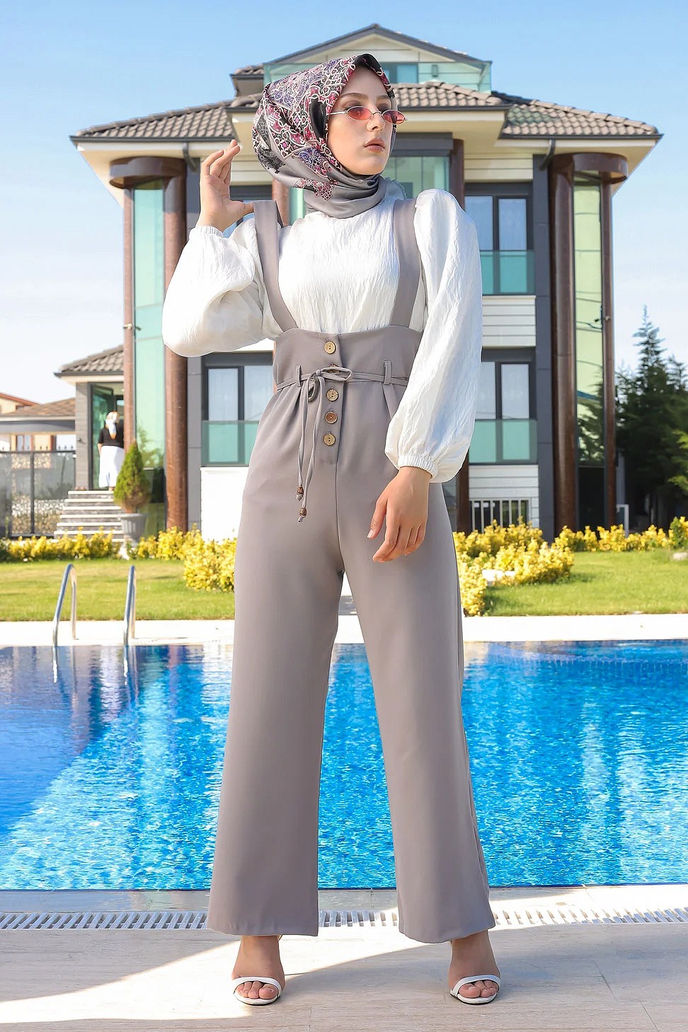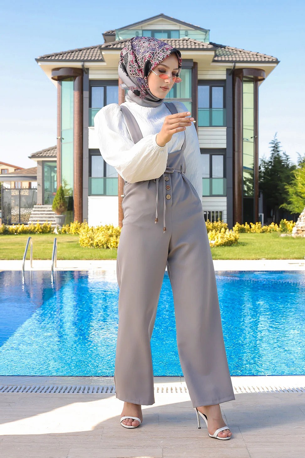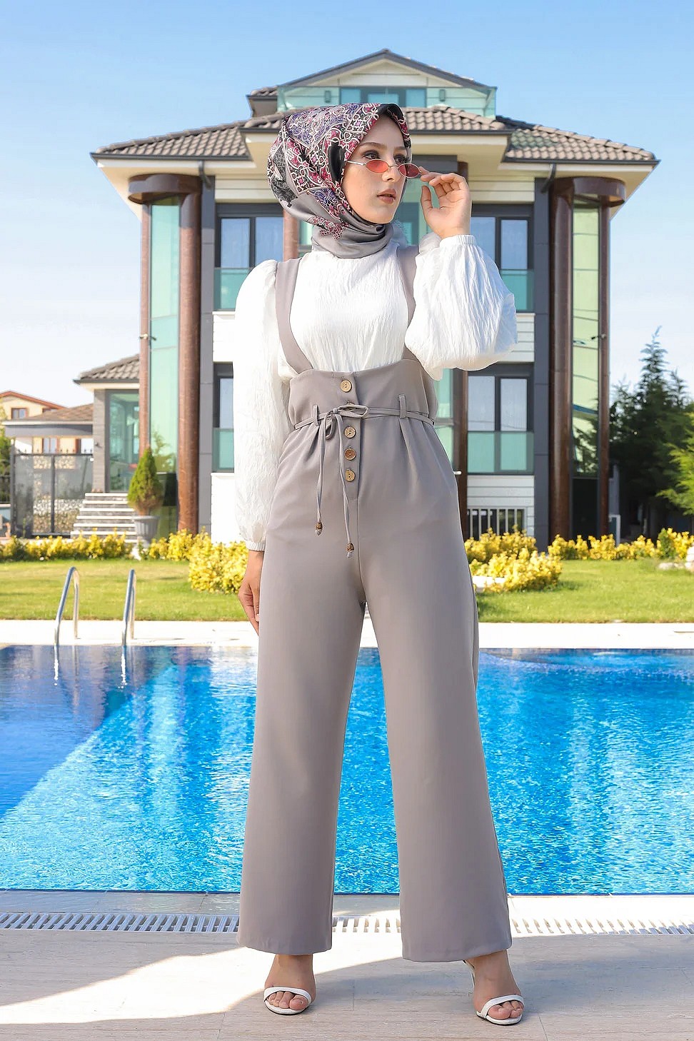 Combinaison-Salopette (Vetement hijab tendance pour femme voilée) - Couleur Gris clair Vetement & Accessoire