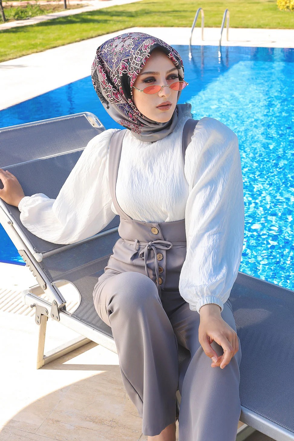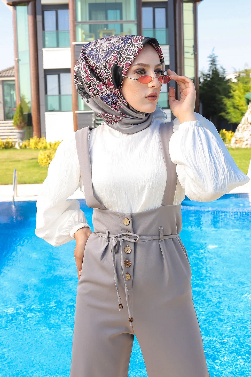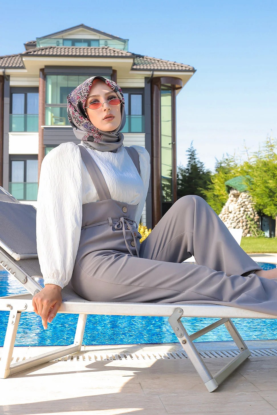 Combinaison-Salopette (Vetement hijab tendance pour femme voilée) - Couleur Gris clair Vetement & Accessoire