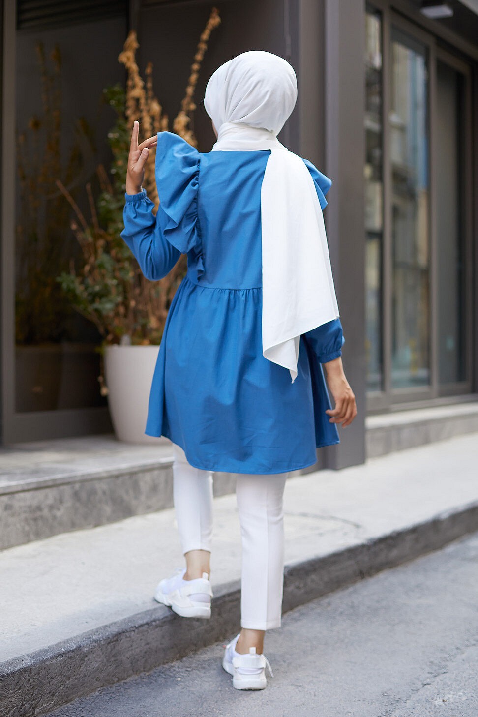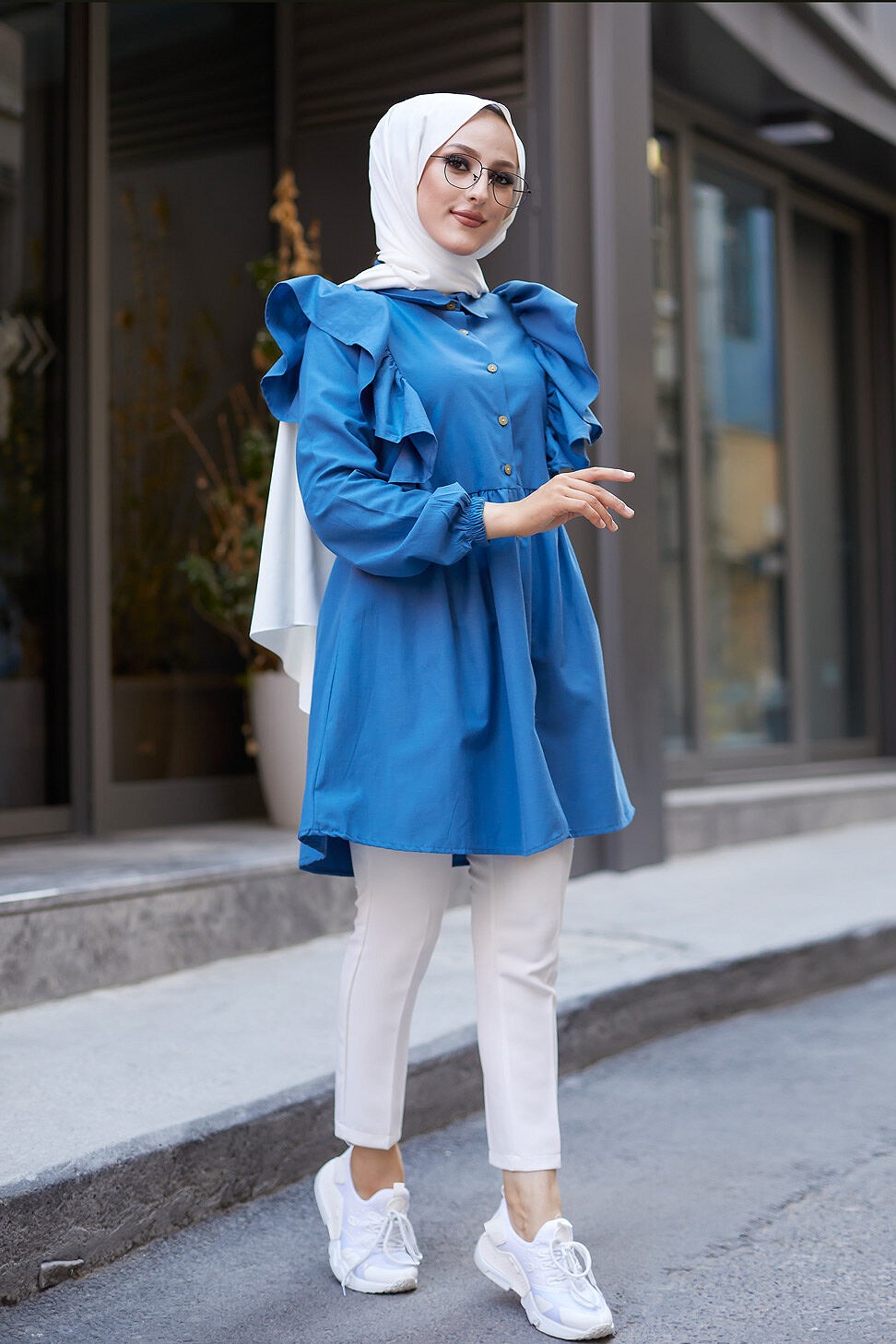 Chemise à froufrou (Vetement femme voilée en ligne) - Couleur bleu pétrole Vetement & Accessoire