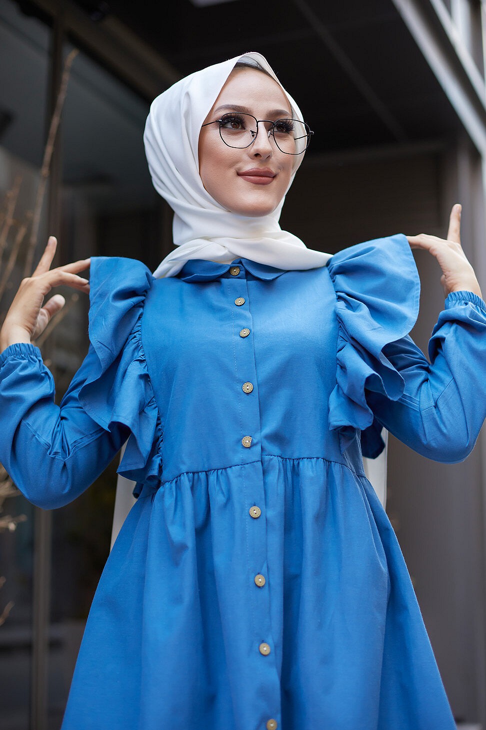 Tunique style habillé pour femme voilée (Vêtement hijab chic) - Couleur bleu - REF. 36653 (19.90 €)