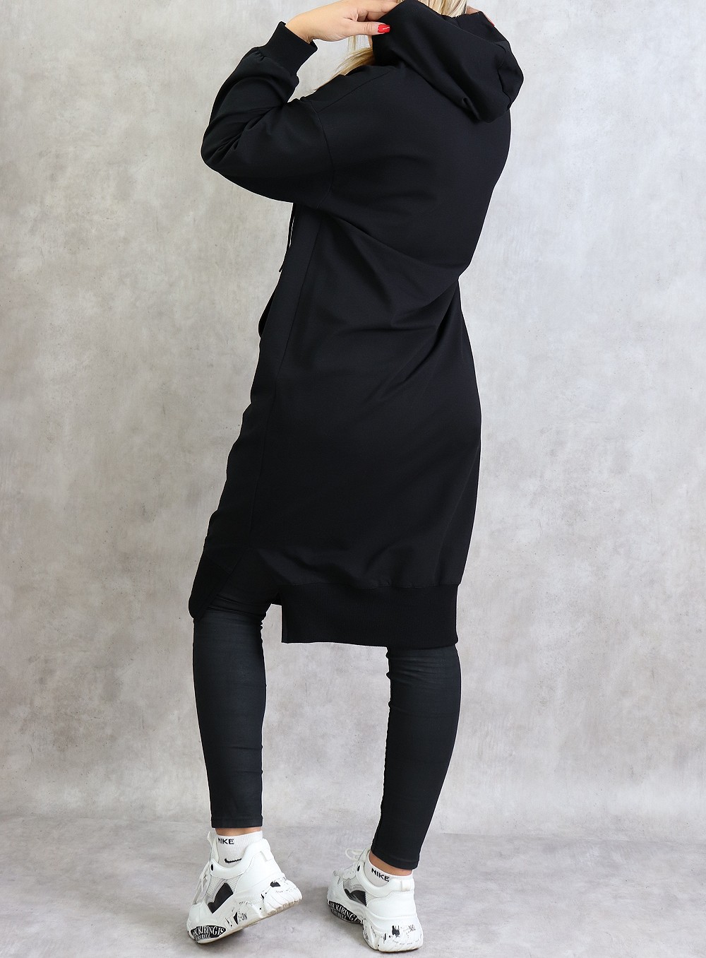 Sweat long a capuche - Sweatshirts femmes en coton - Couleur noir