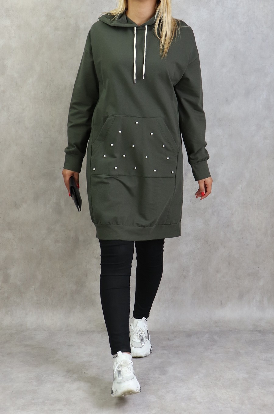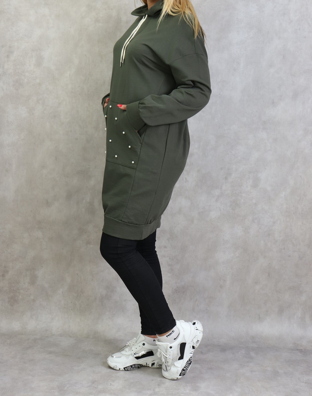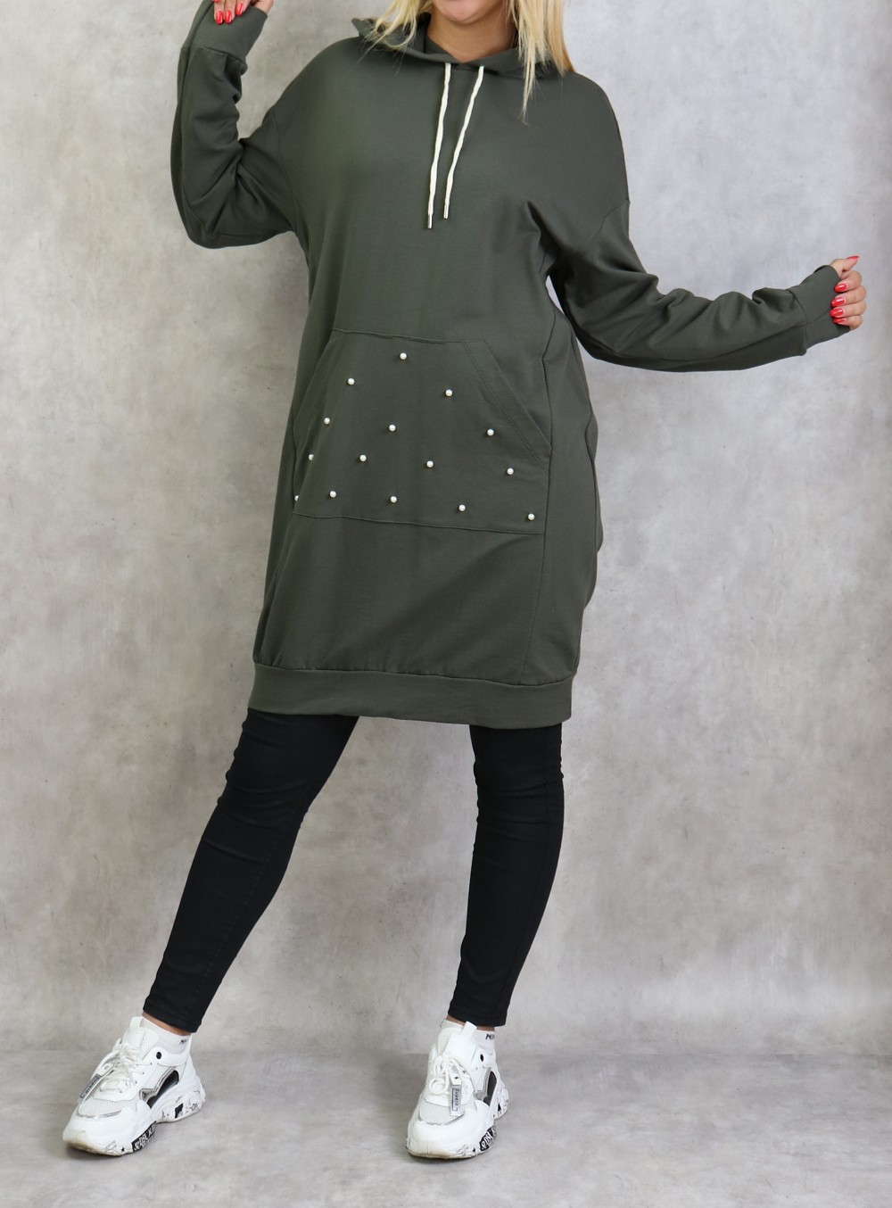 Sweat long à capuche avec lien de serrage et poche kangourou décoré de petites perles nacrées. Parfait pour être en mode Urban Classic.