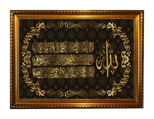 Tableau avec une calligraphie en style Thuluth de "Ayatou-l-Koursî" (Le verset du Trône - Sourate N°2 Al Baqara - Verset 255).