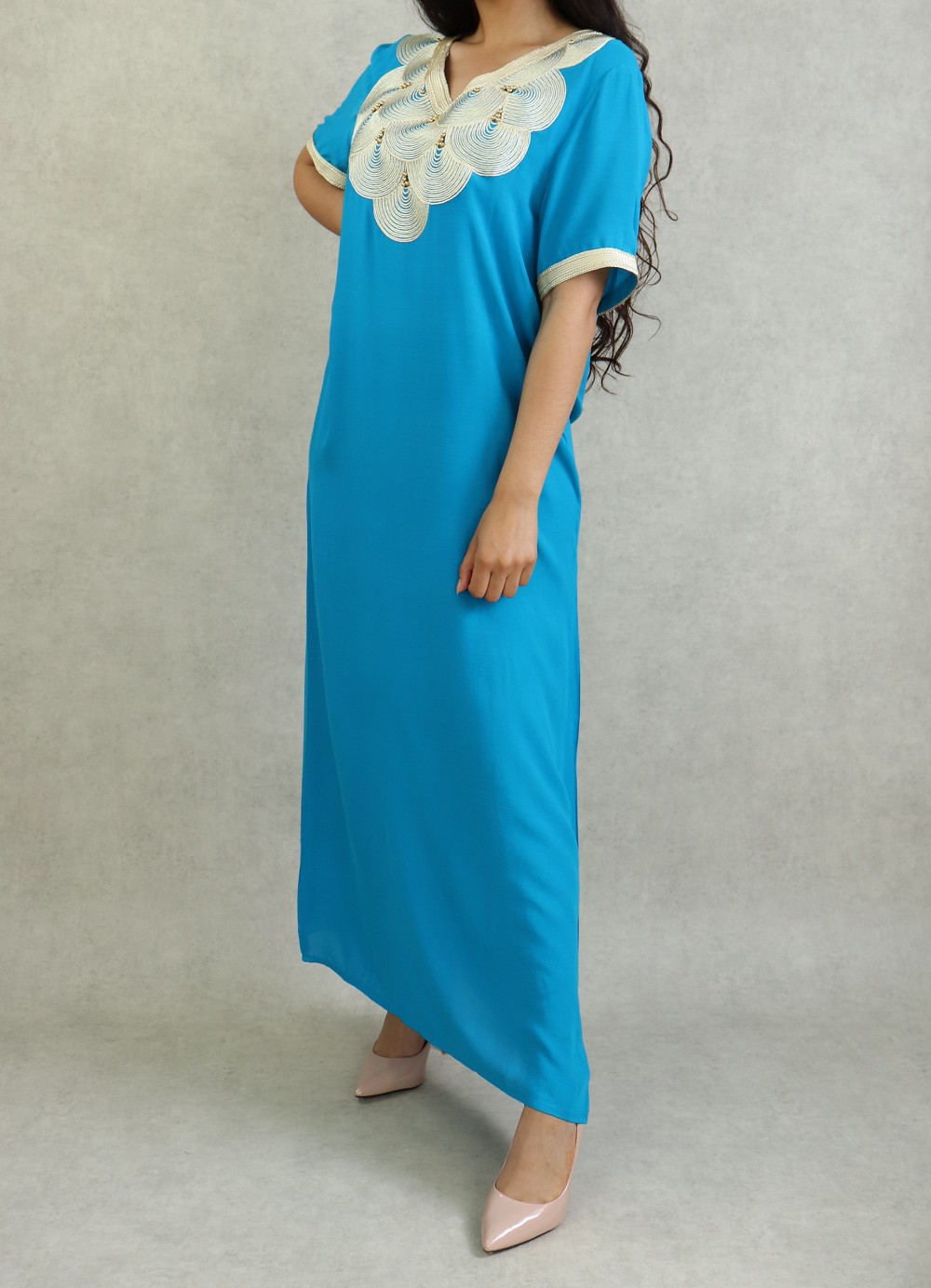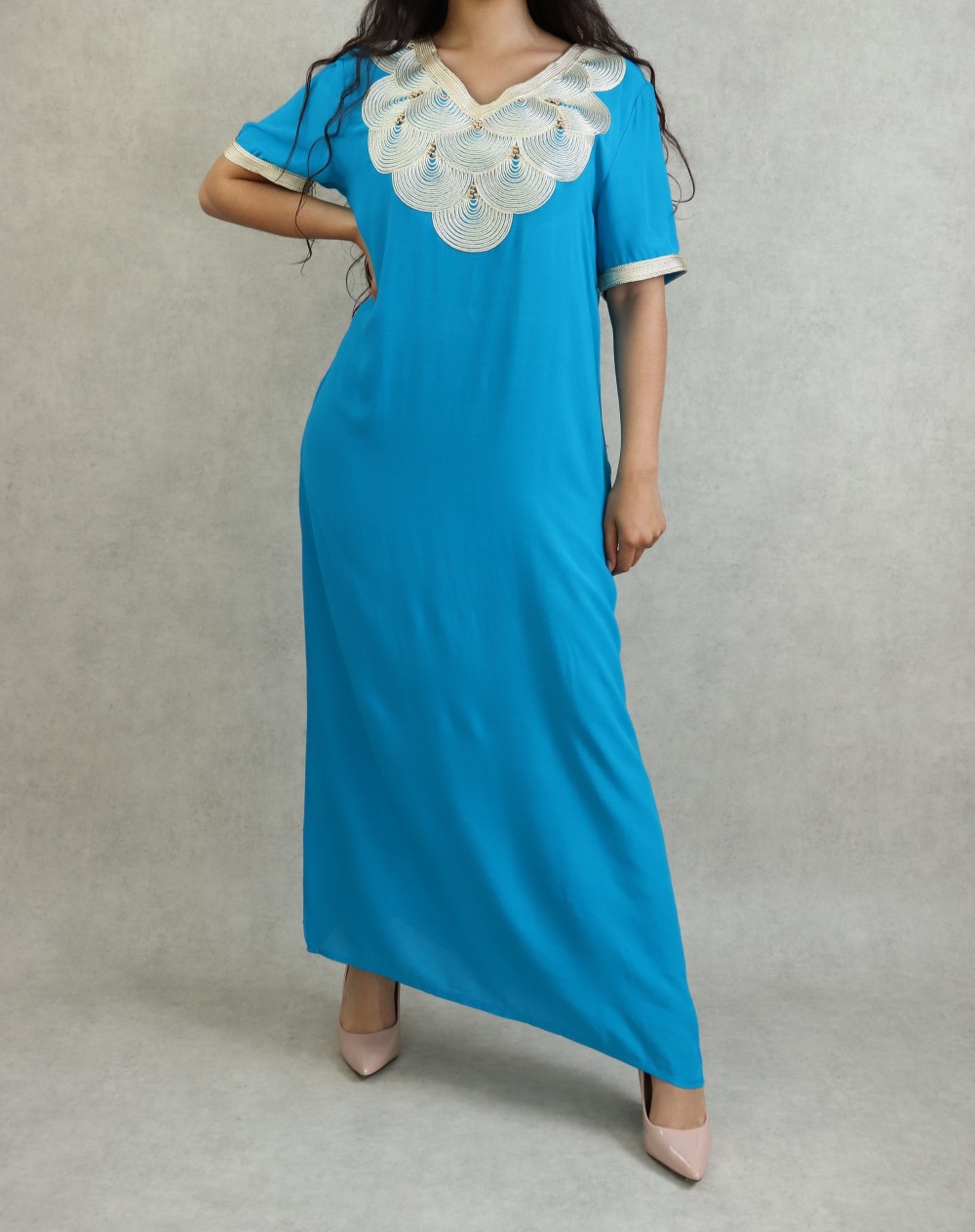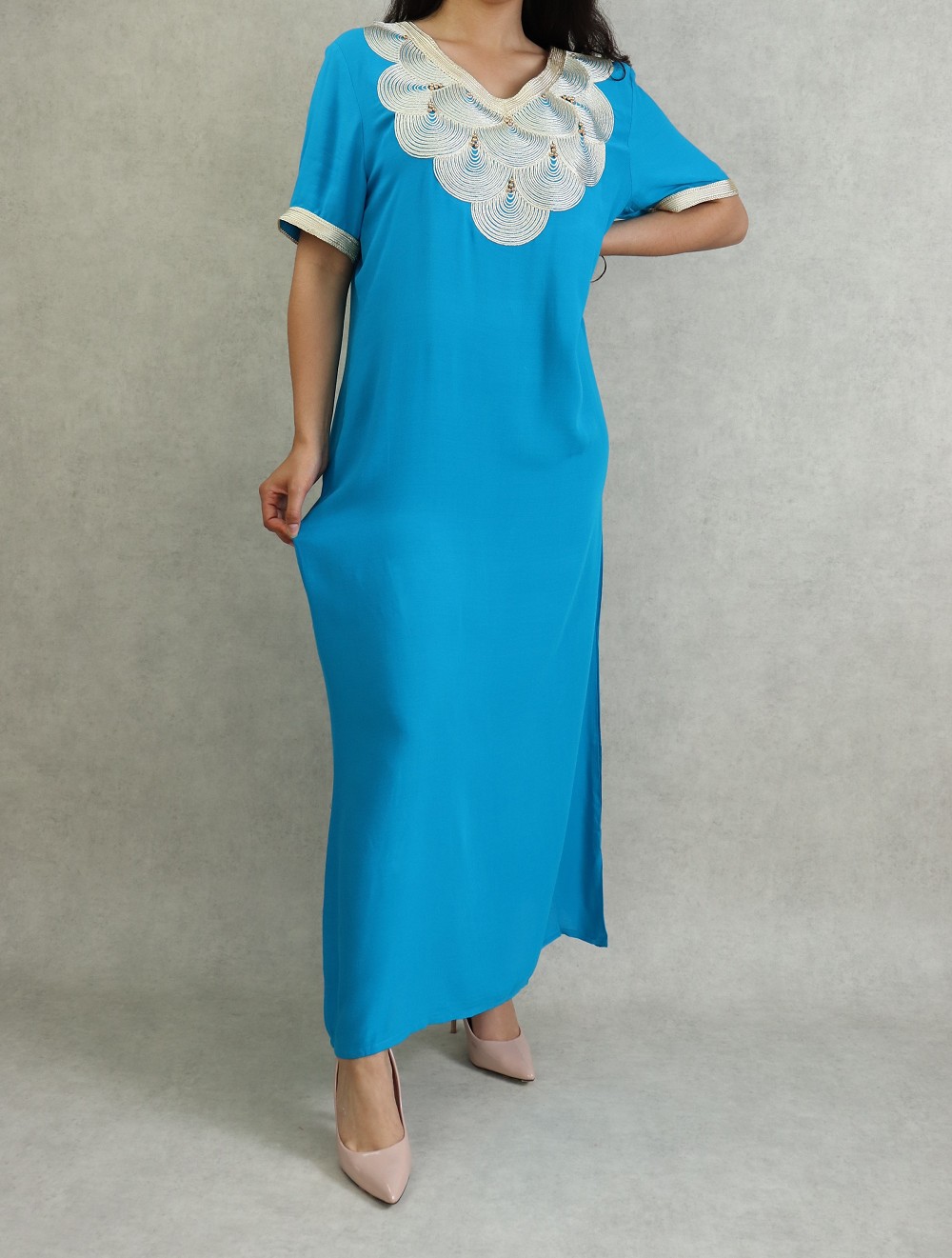Robe marocaine manches courtes avec broderies - Couleur Vert émeraude - REF. 31841 (29.00 €)
