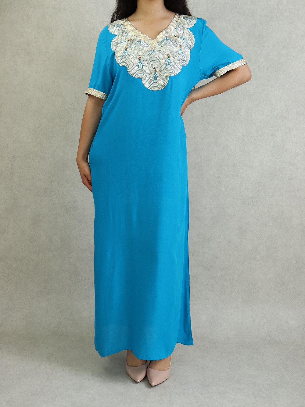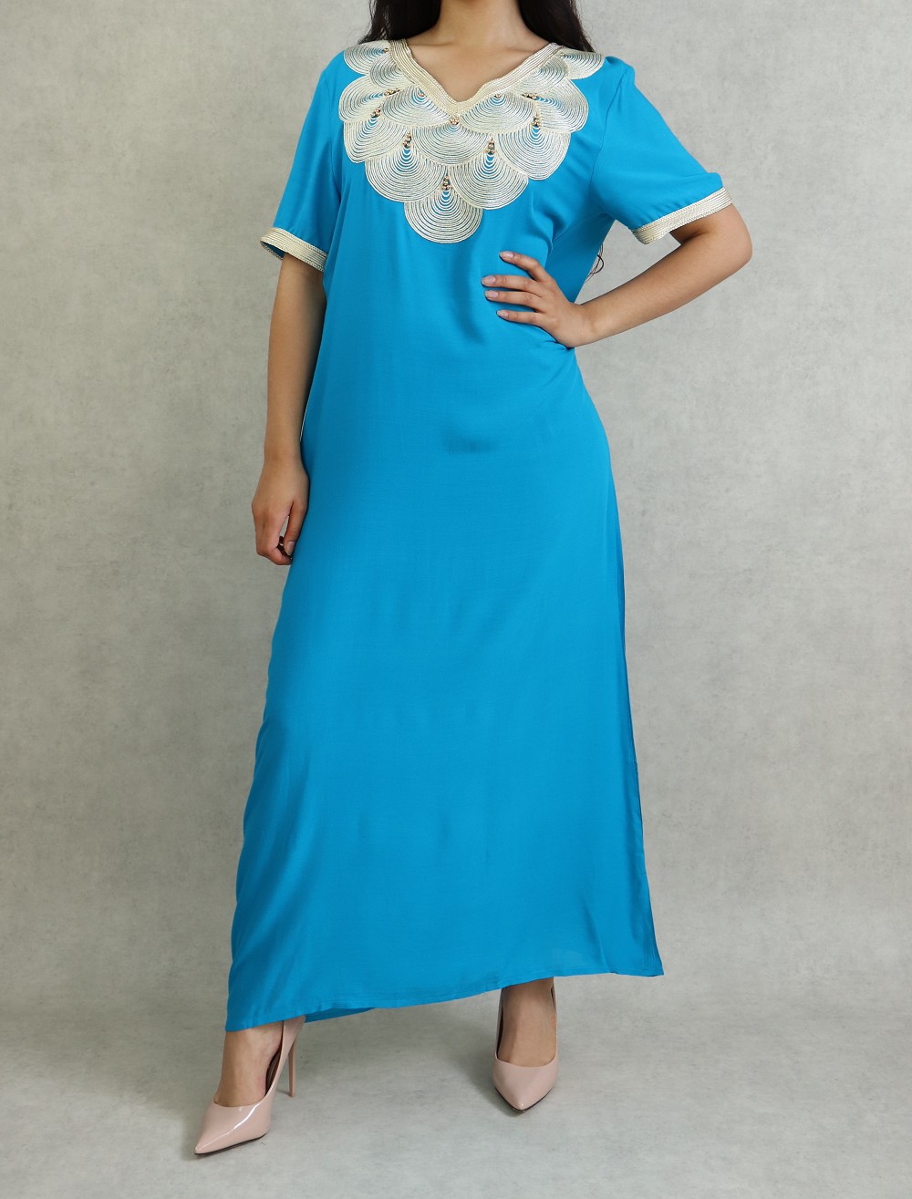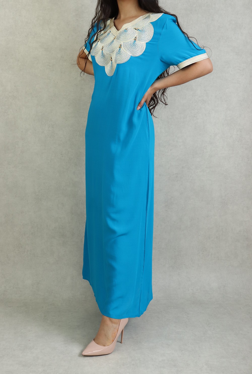 Robe longue avec broderies blanches (Plusieurs couleurs disponibles) - REF. 30101 (24.90 €)