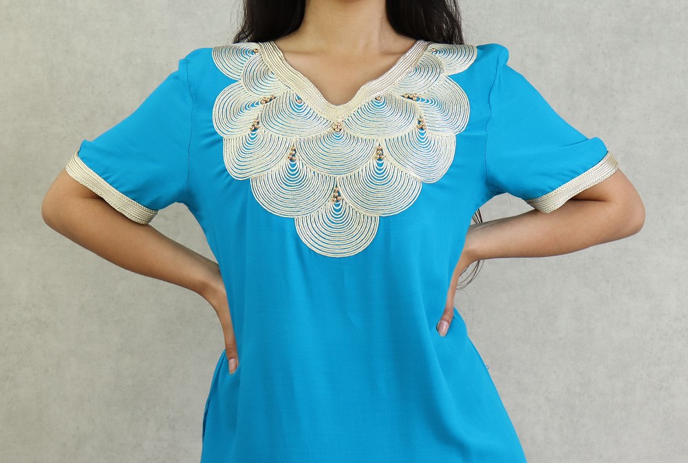 Robe orientale longue avec de broderie traditionnelle japonaise - Couleur Bleu Azur Vetement & Accessoire