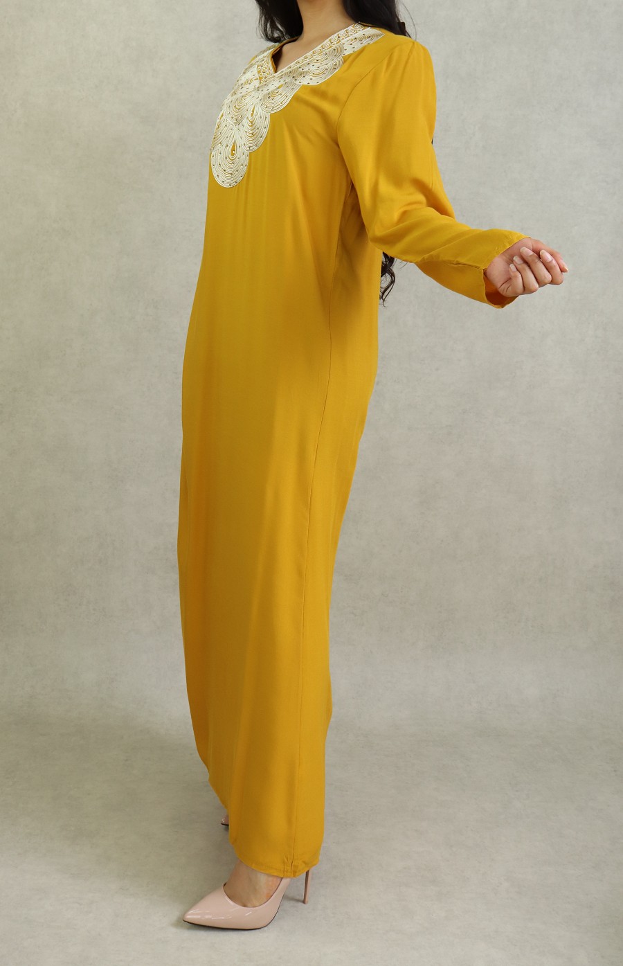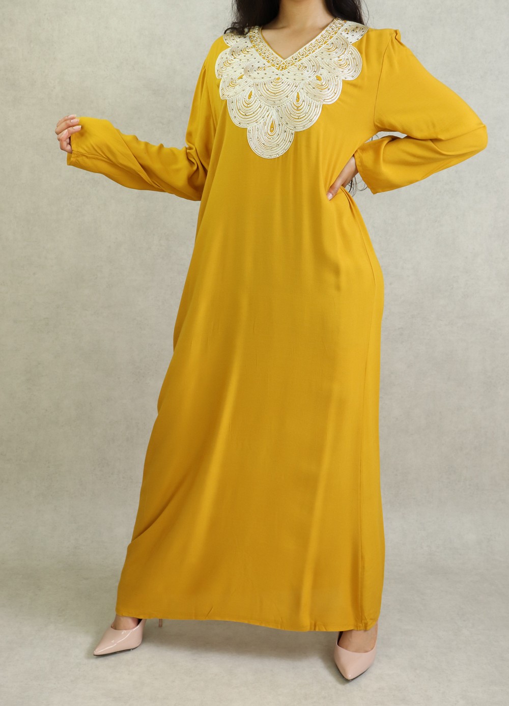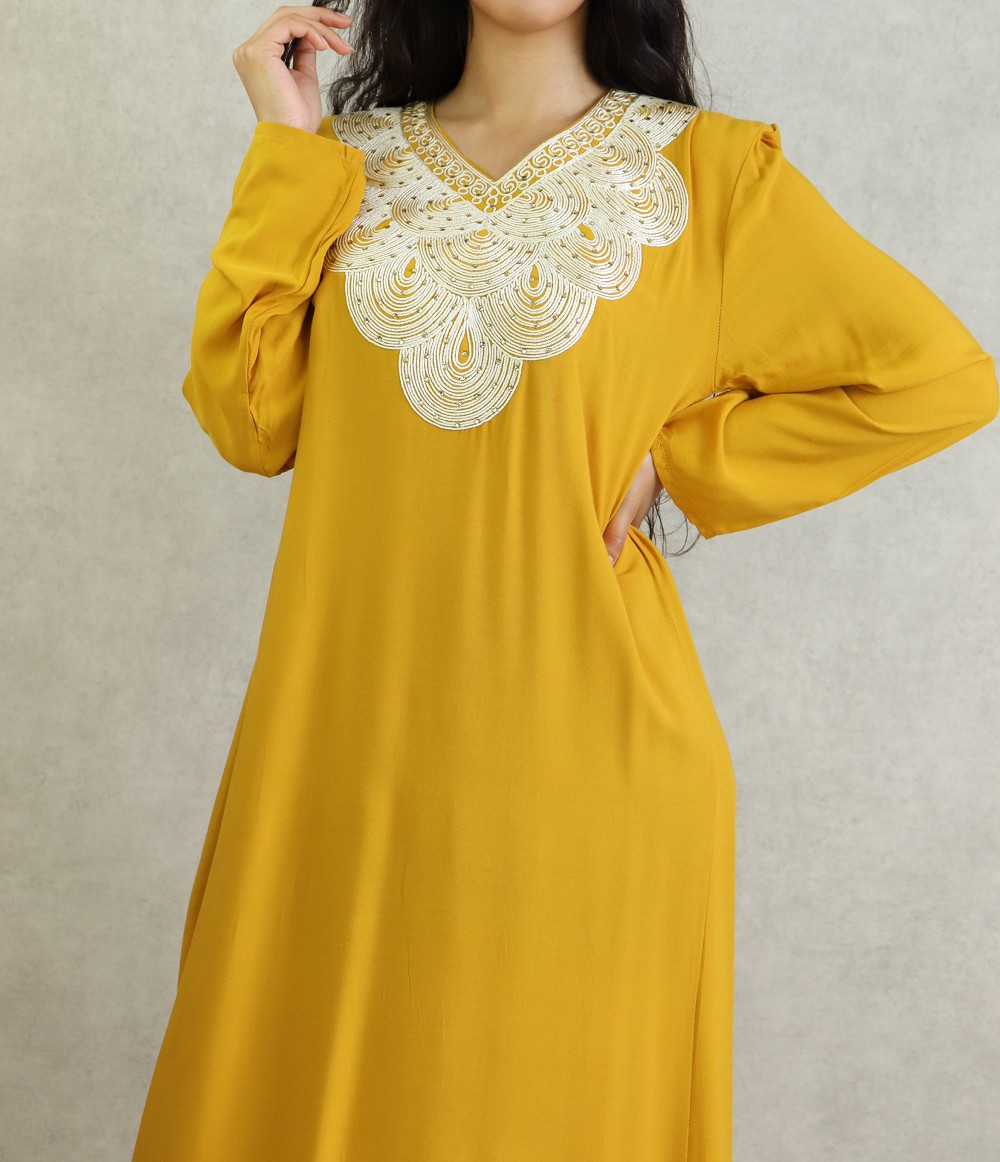 Robe orientale longue avec broderies - Manches longues - Couleur Jaune Moutarde Vetement & Accessoire