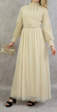 Robe longue de soirée en tulle perlée pour femme - Couleur Beige - REF. 31274 (39.00 €)