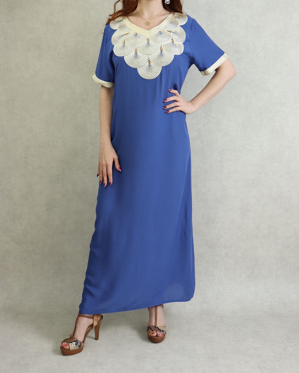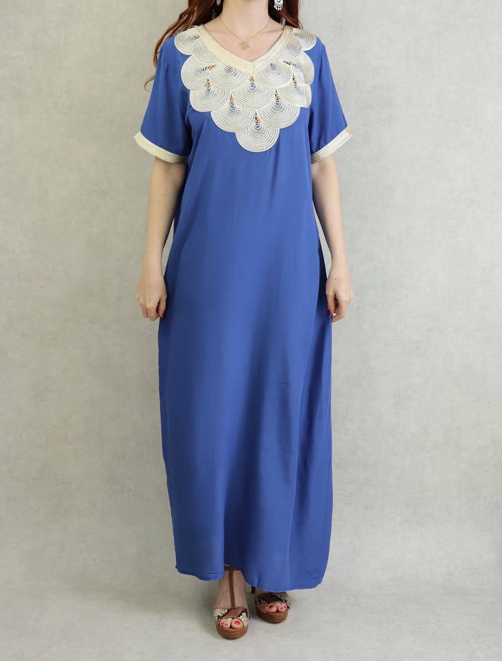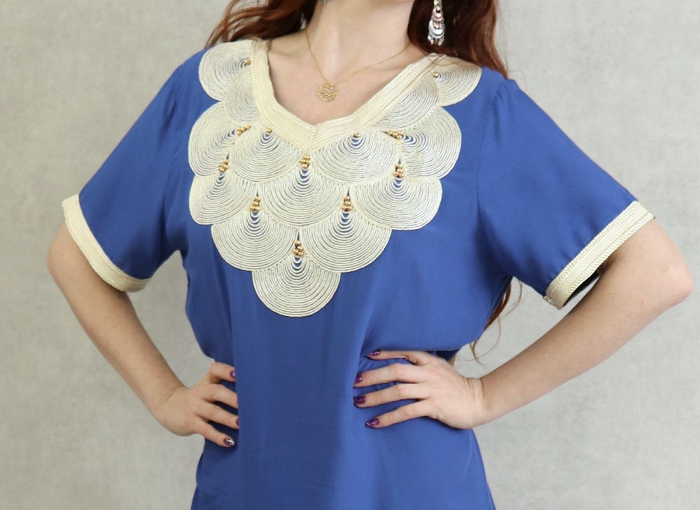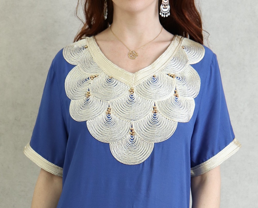 Robe orientale manches courtes avec de jolies broderies traditionnelles japonaises et perles dorées.