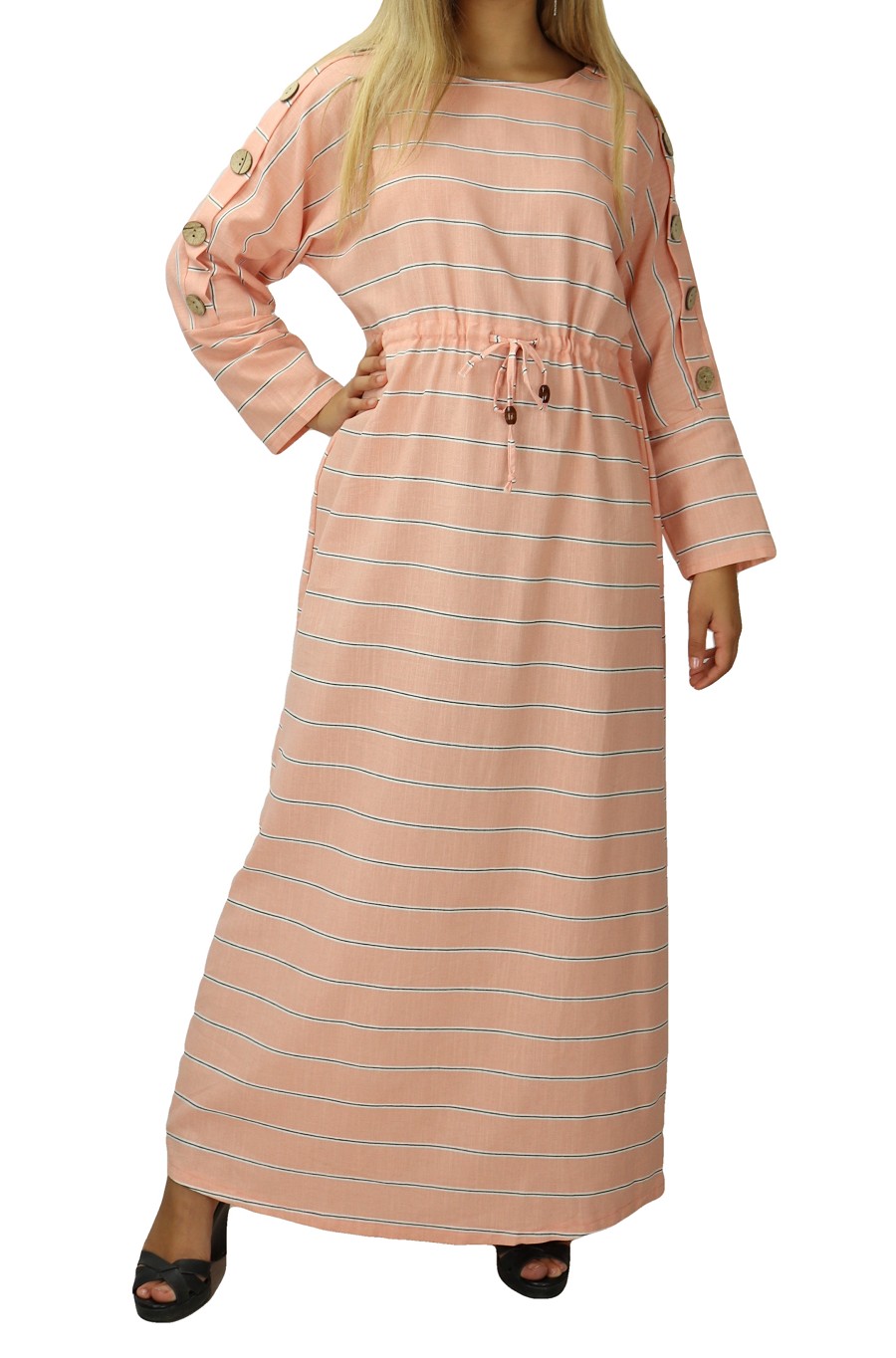 Robe longue en coton pour femme a rayures decoree de boutons - Couleur rose saumon