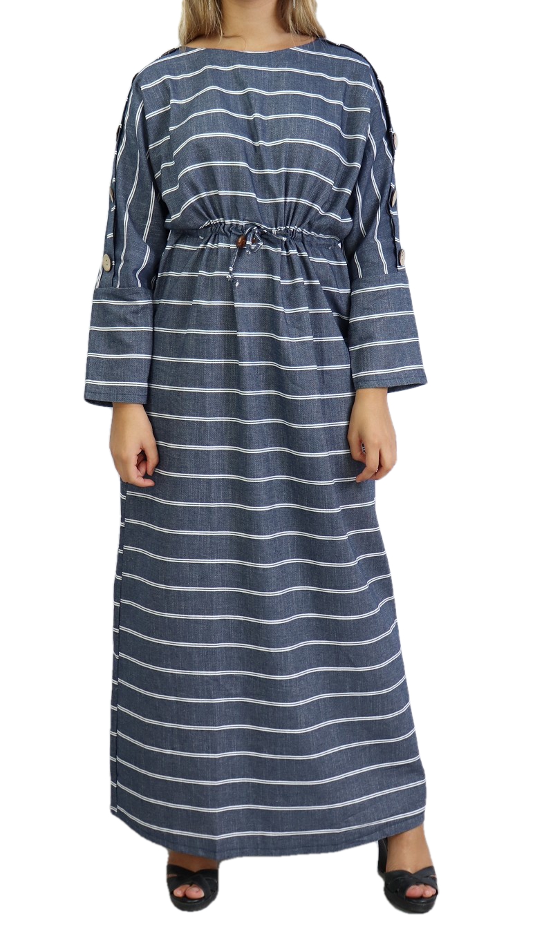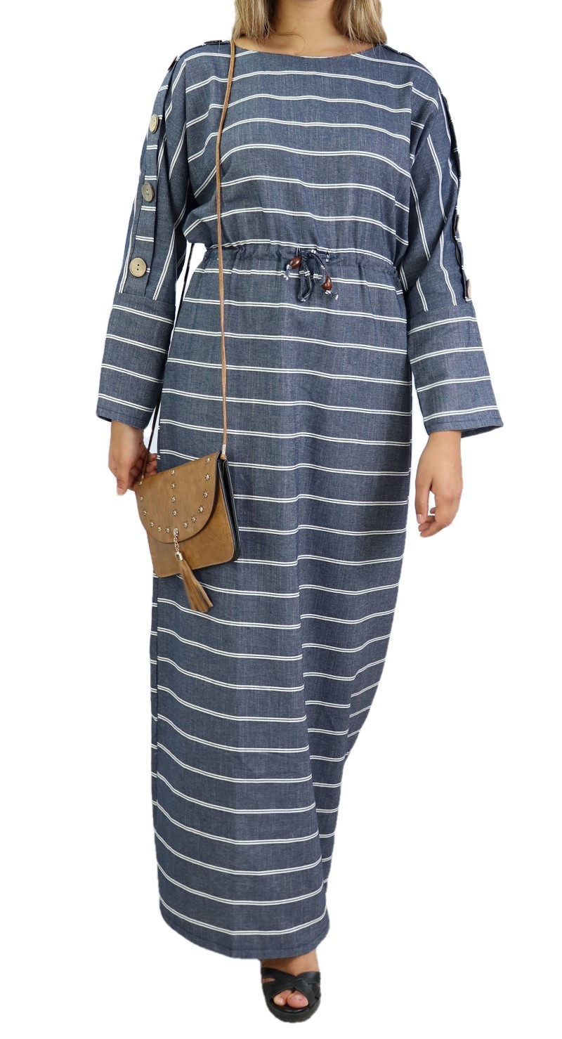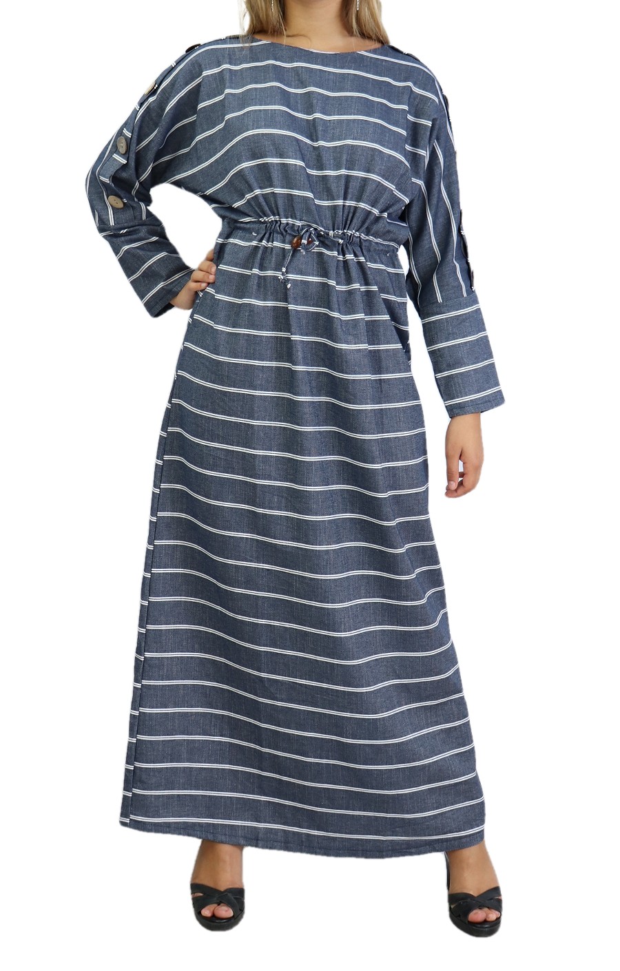 Robe longue en coton pour femme a rayures decoree de boutons (Plusieurs couleurs disponibles)