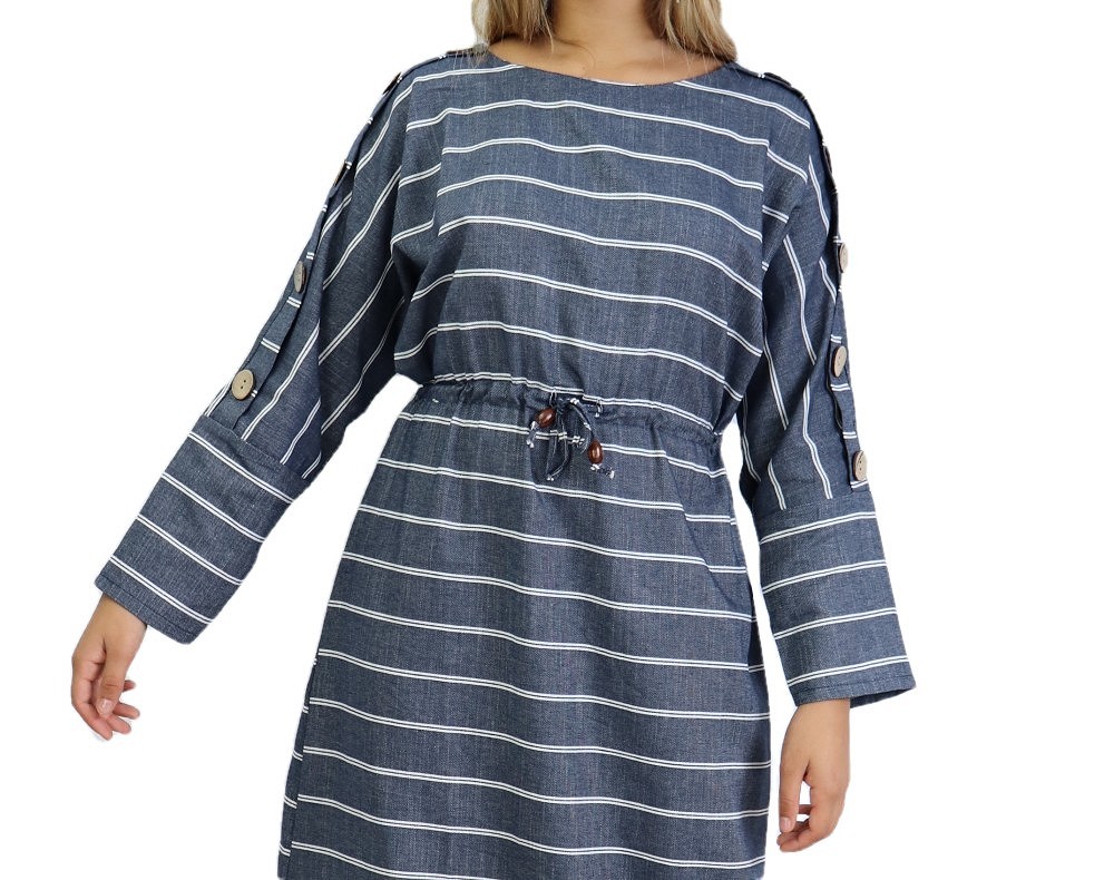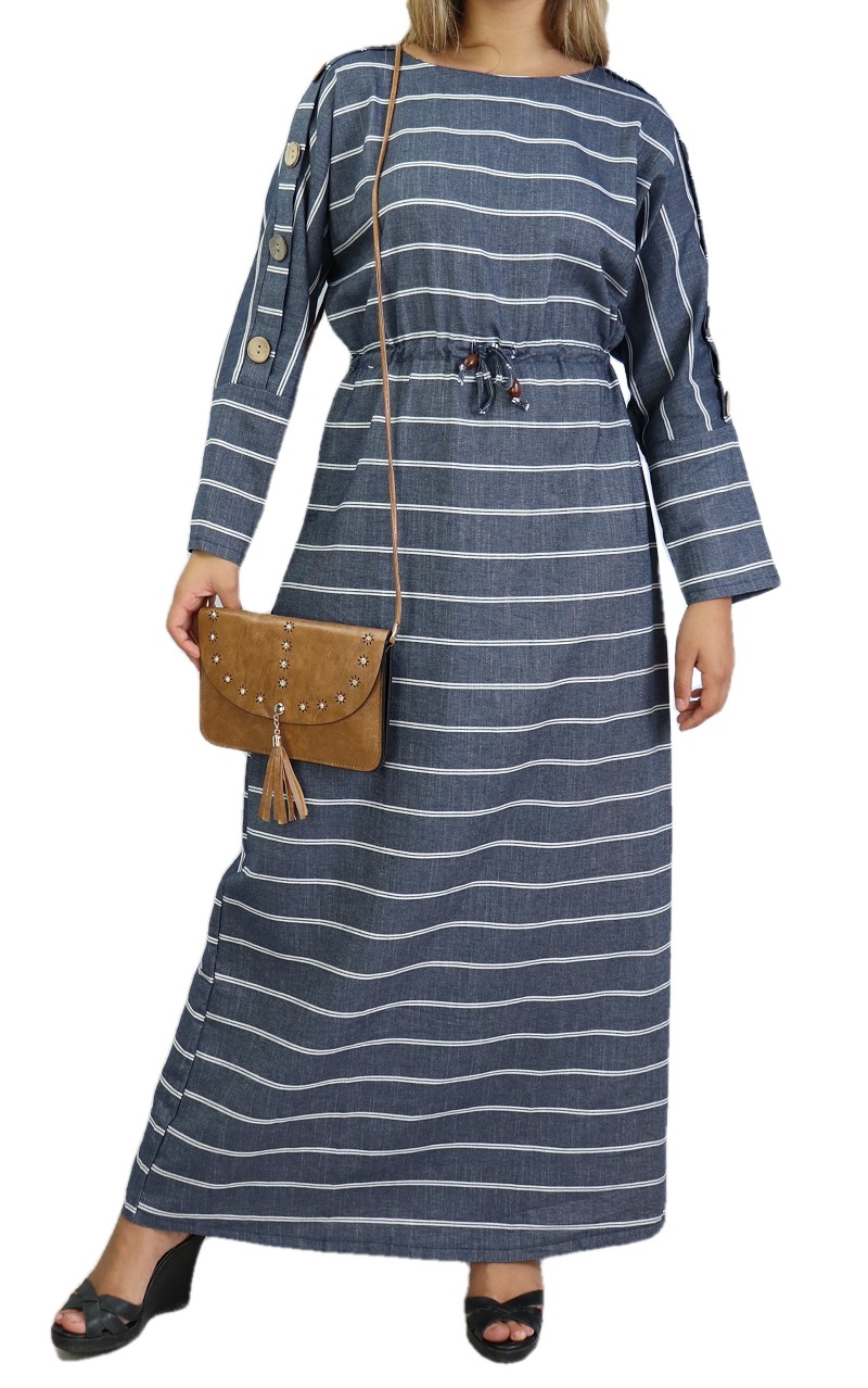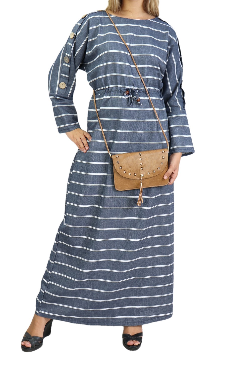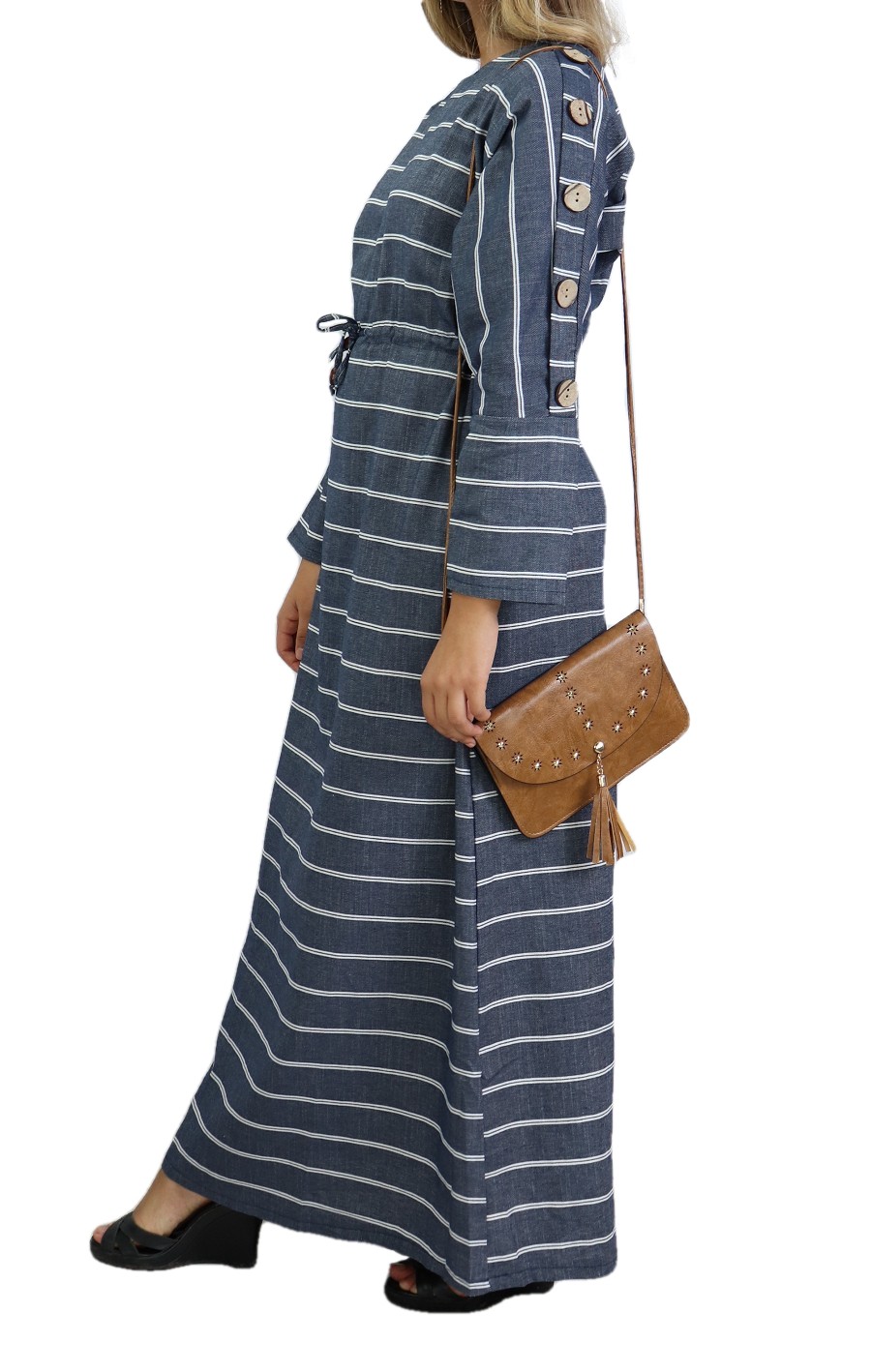 Robe longue en coton pour femme a rayures decoree de boutons (Plusieurs couleurs disponibles)