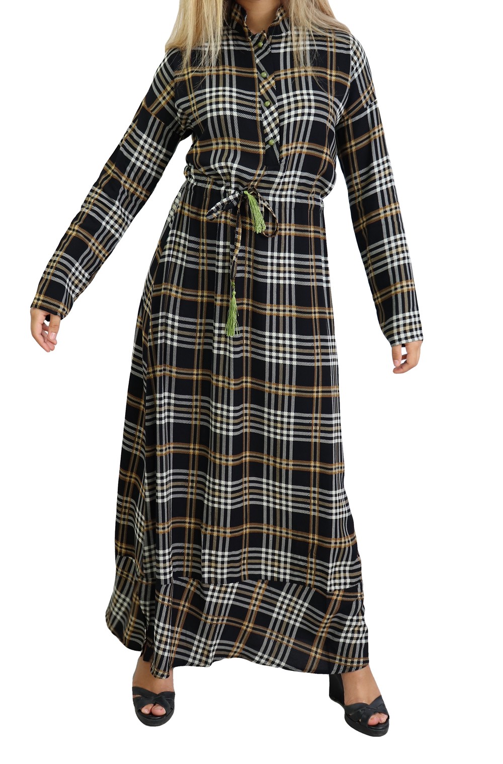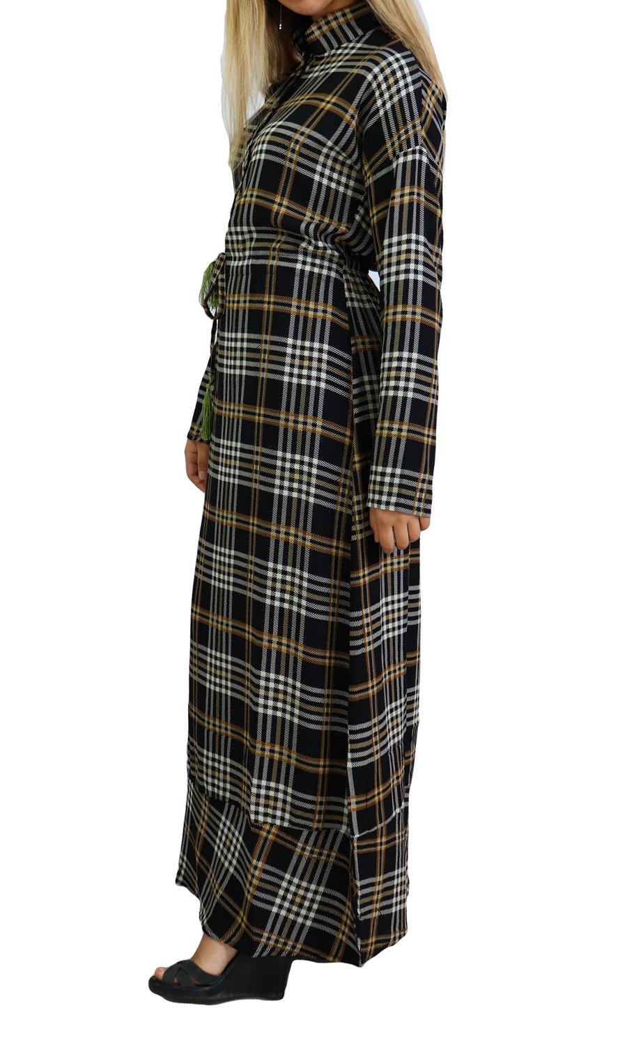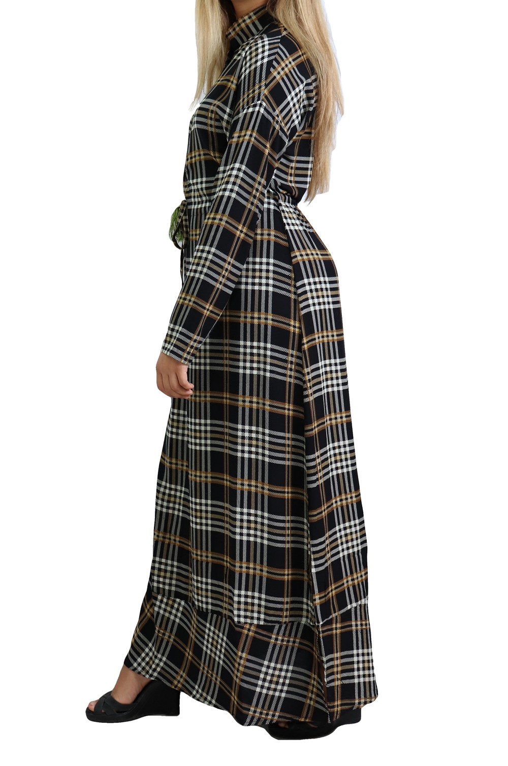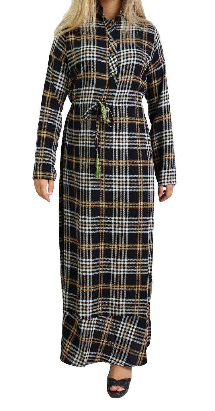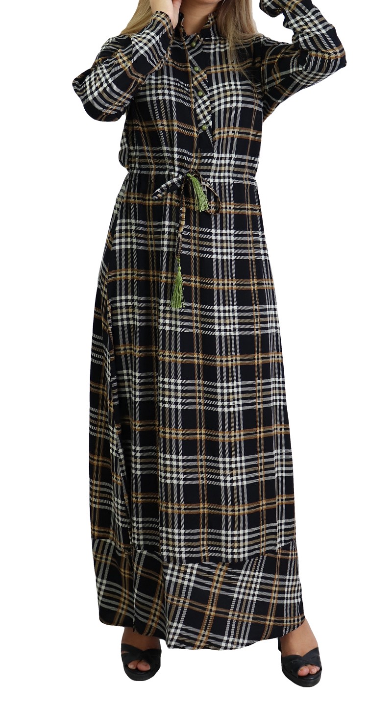 Robe longue à carreaux mi-saison en coton pour femme Vetement & Accessoire