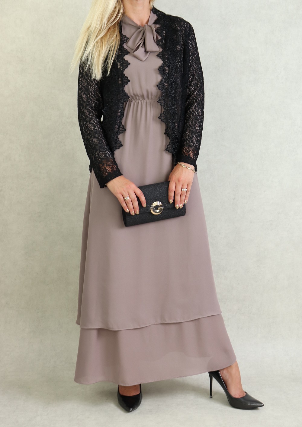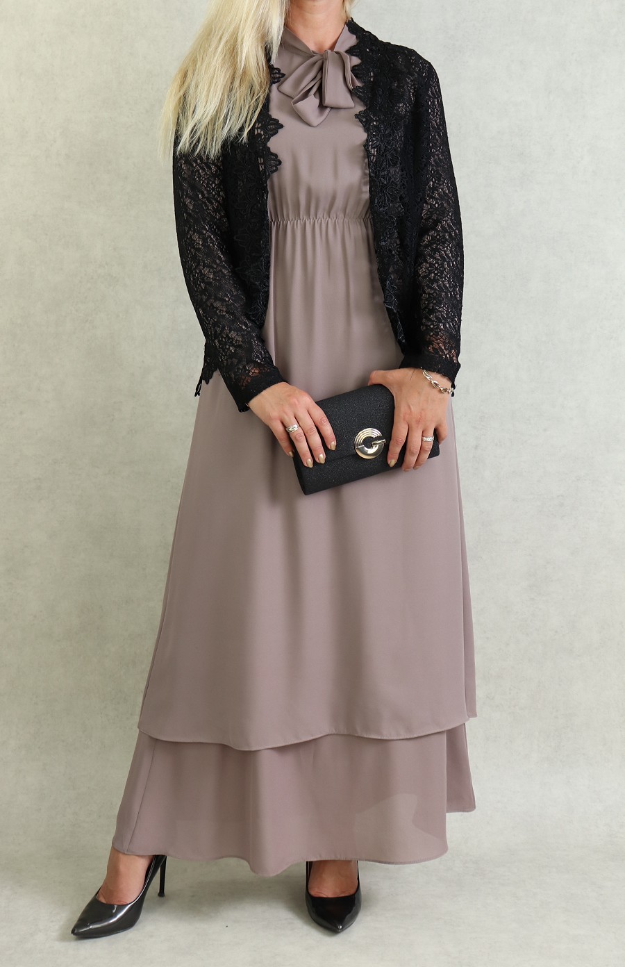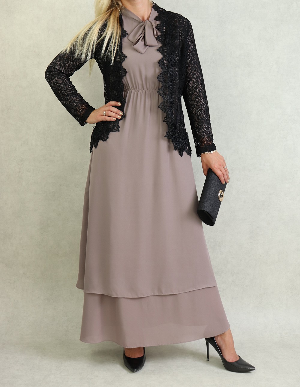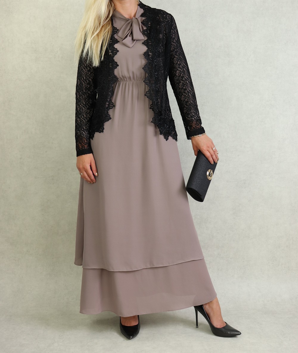 Ensemble deux pièces : veste motif léopard et robe noire avec collier assorti (Vetement hijab 2021) - REF. 33138 (39.00 €)