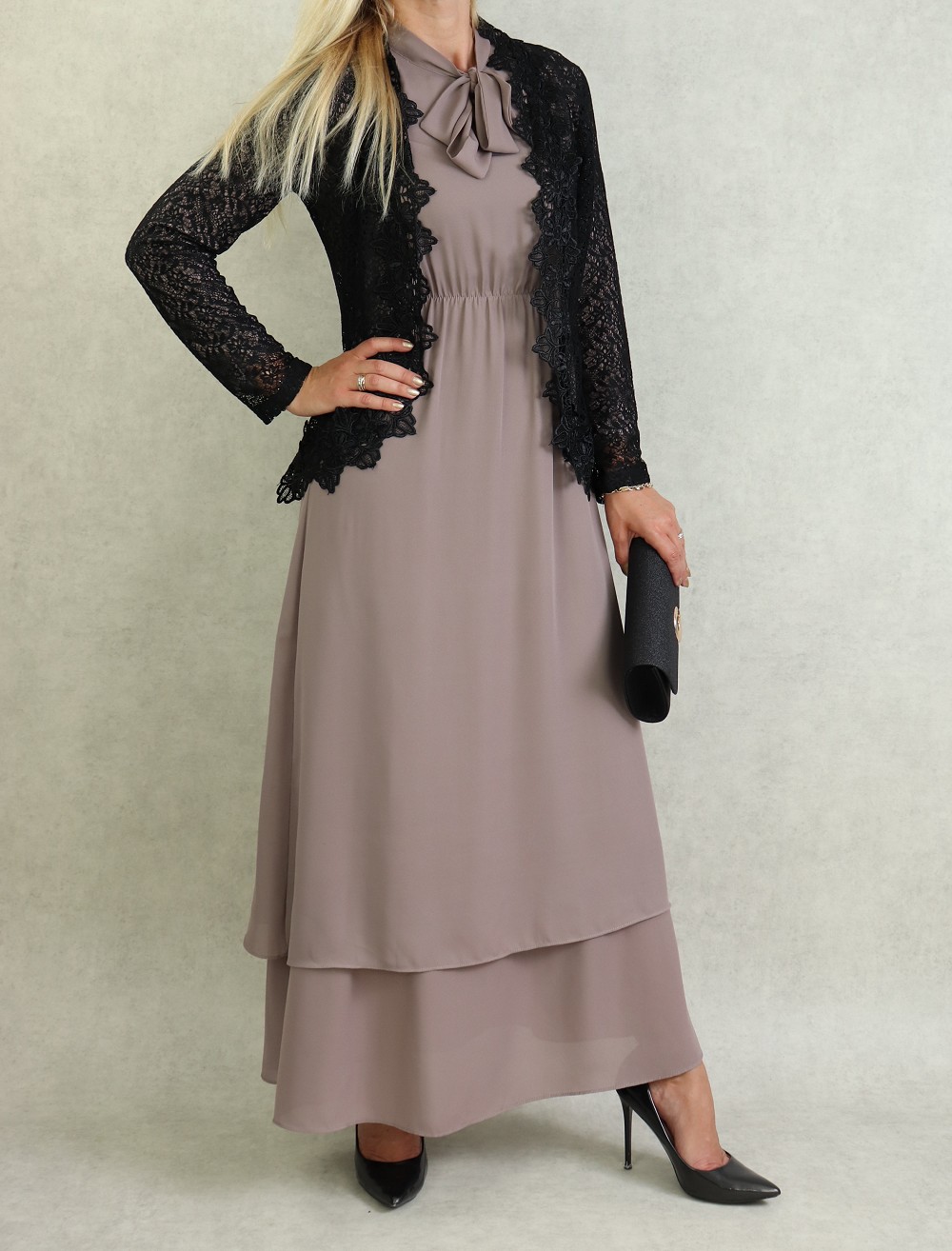 Avec ce joli gilet en dentelle, cette robe classique gagnera en élégance.