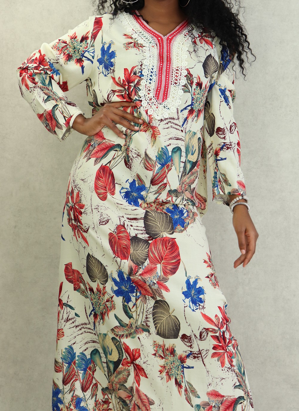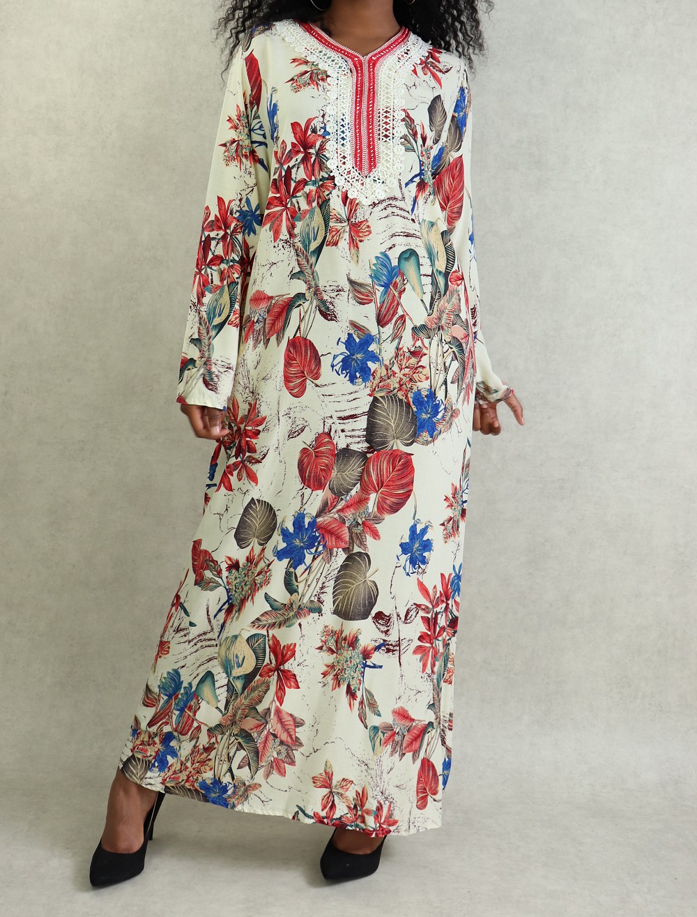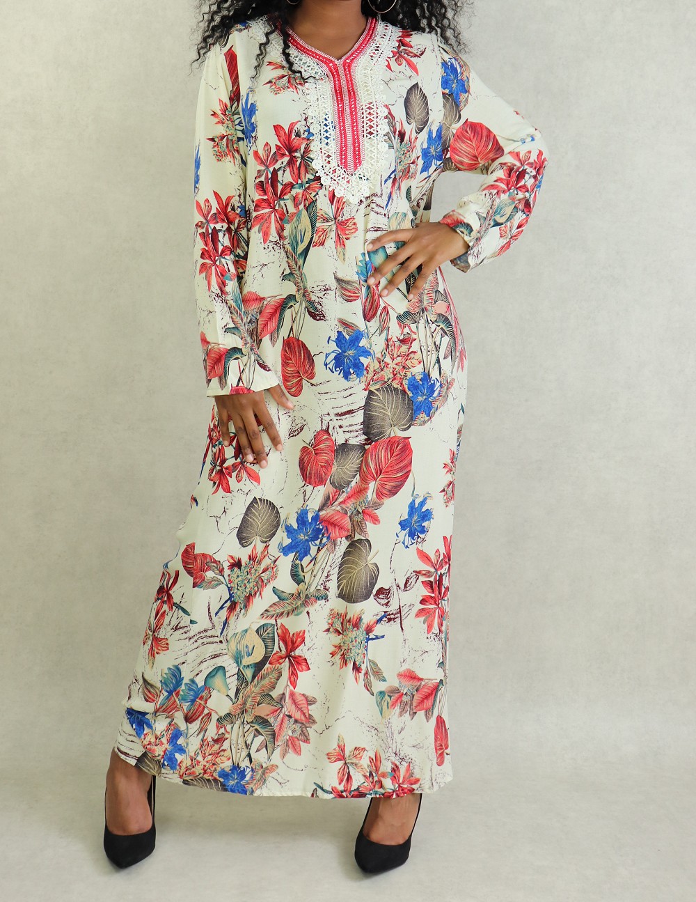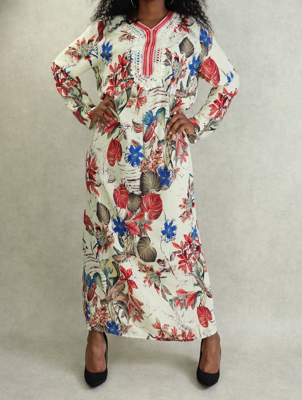Cette robe d'intérieur à manches longues au toucher coton, elle est douce et agréable. Jolies broderies sur le devant.