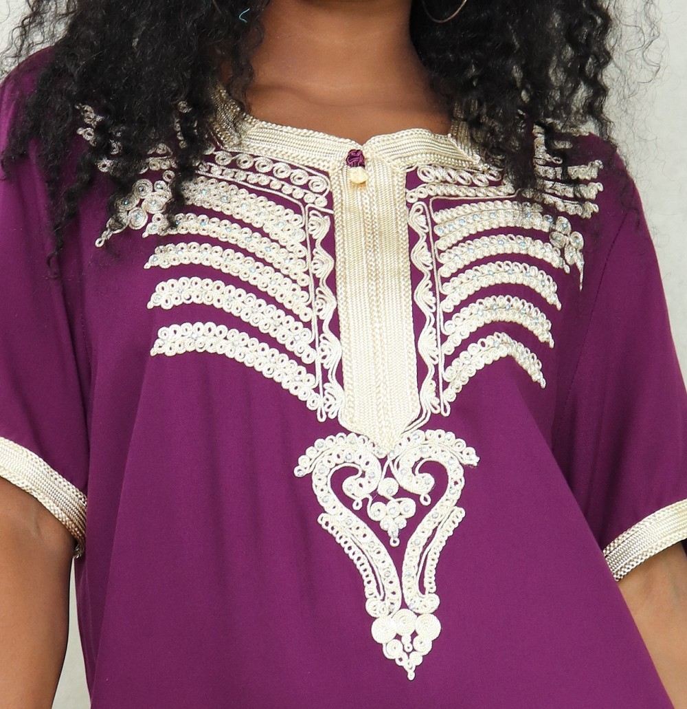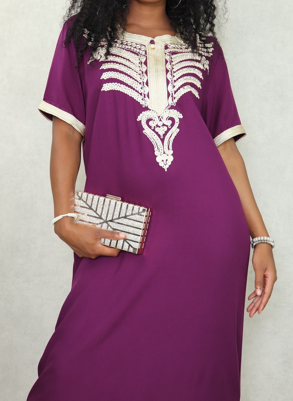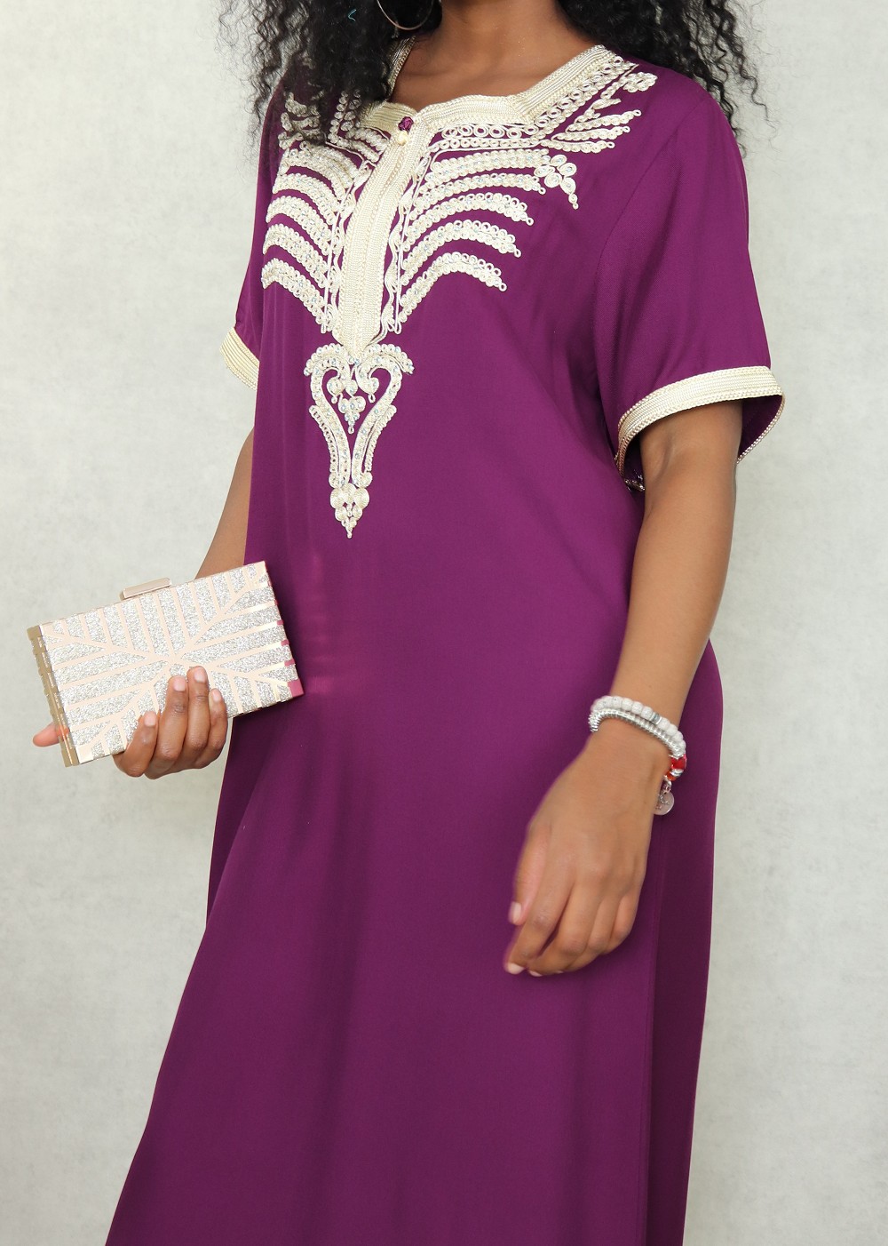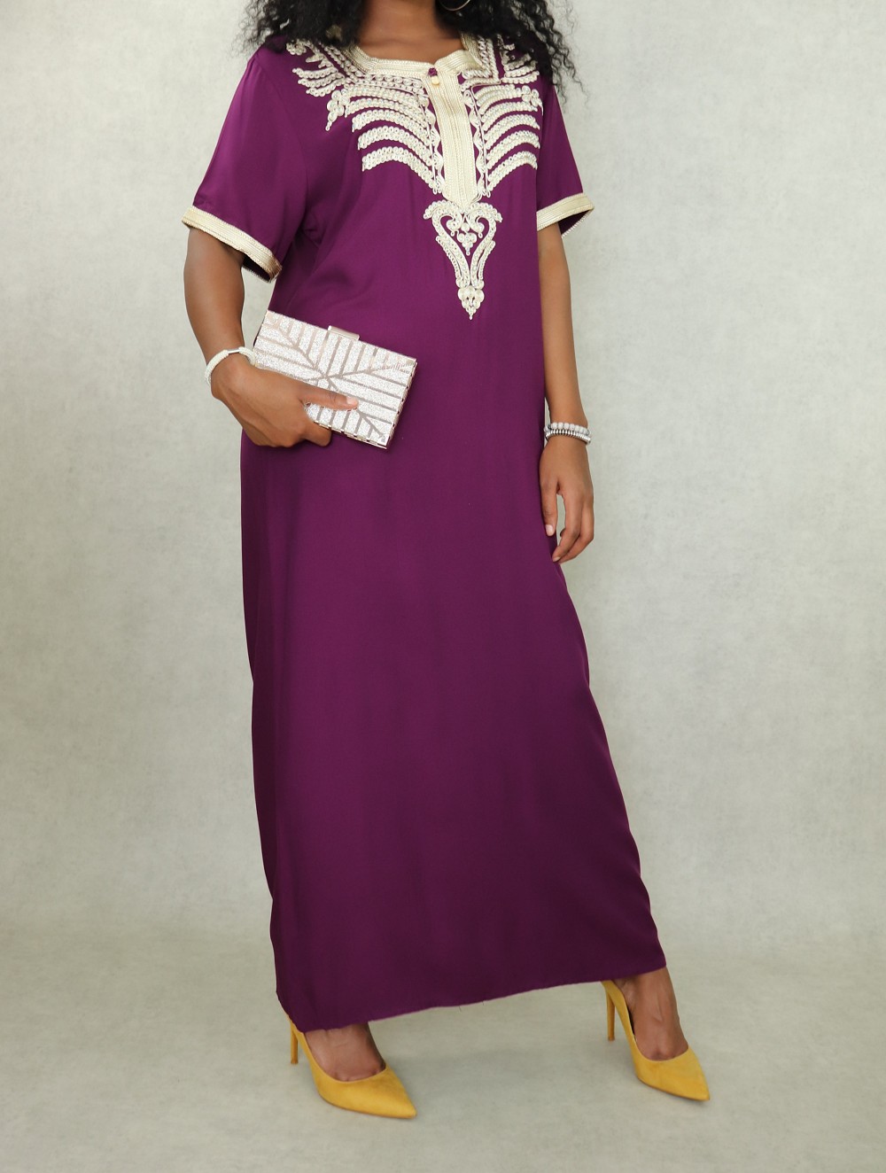Robe orientale longue brodée manches courtes fluide et décontractée pour femme - Couleur Violet Vetement & Accessoire