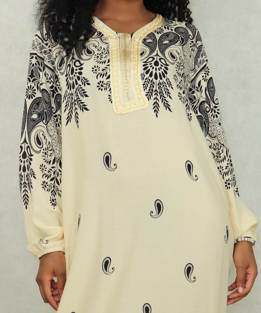 Ces motifs style cachemire sur le haut et le bas ainsi que sa broderie au niveau du col en font un modèle original et agréable à porter au quotidien avec sa matière 100% coton.
