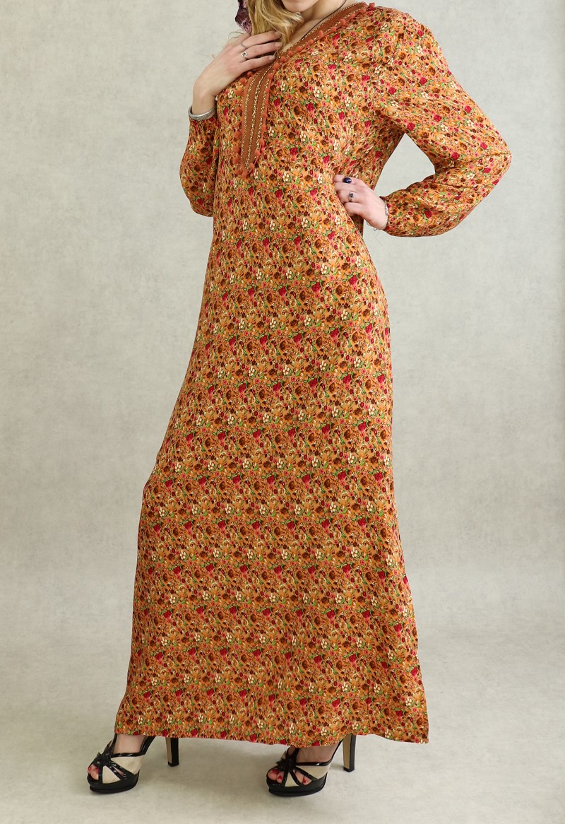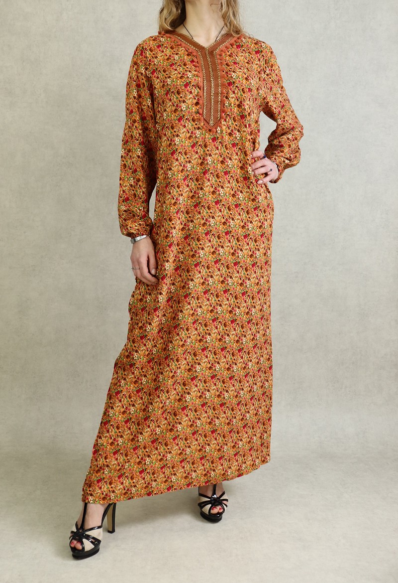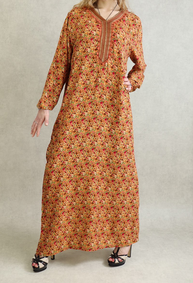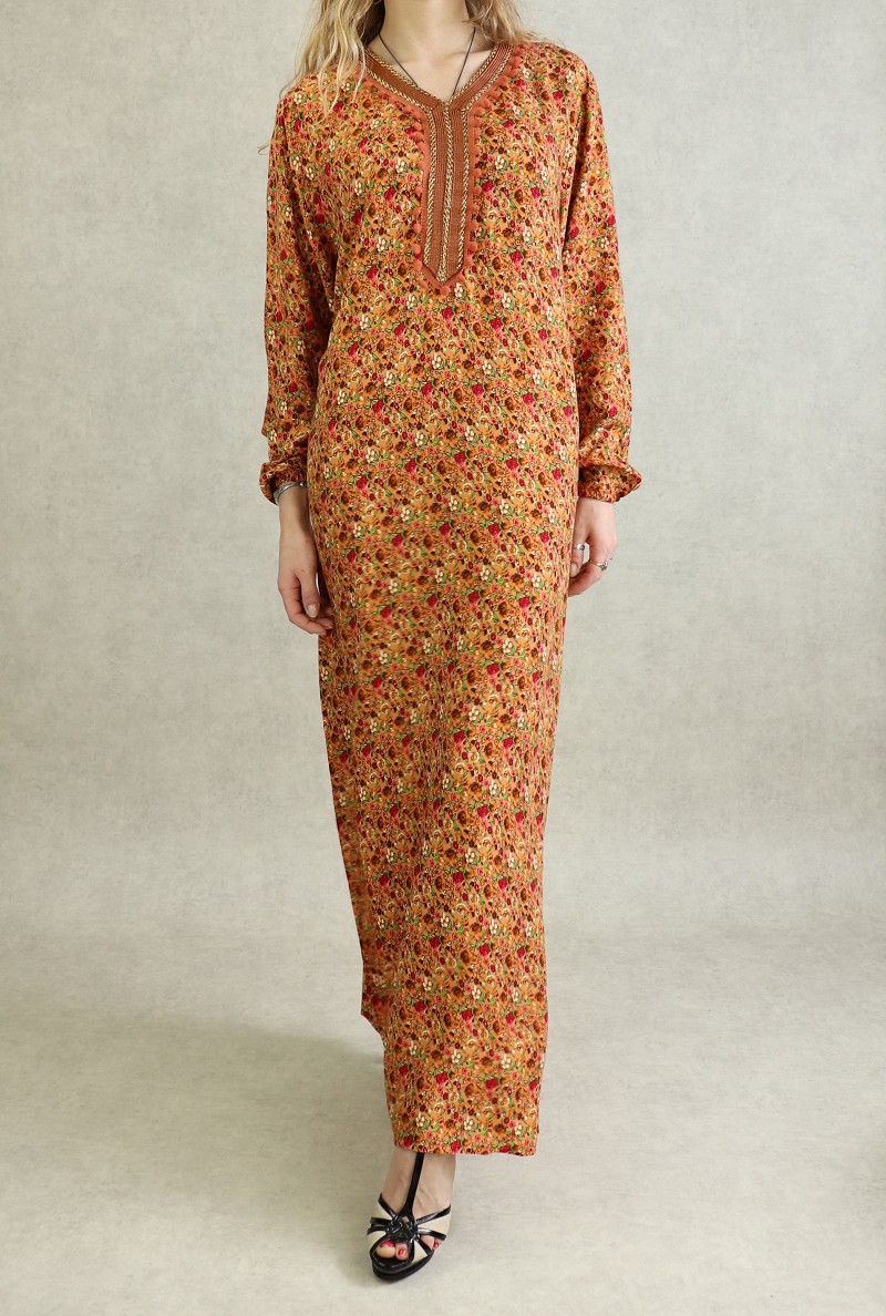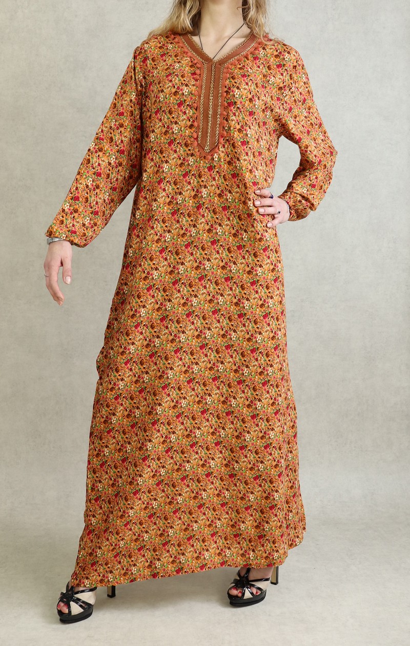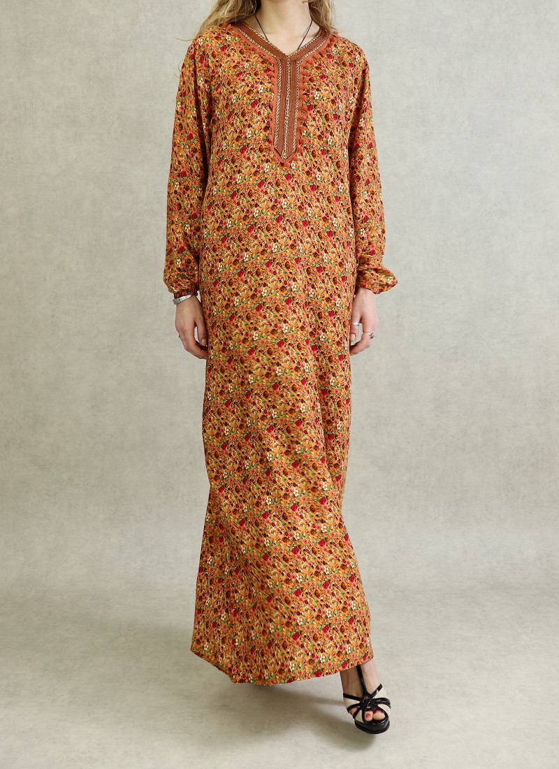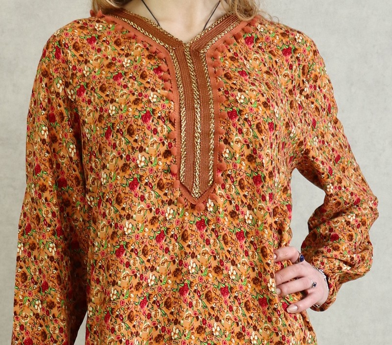 Robe d’été fluide et légère à fleurs. Manches longues, finition élastiques aux poignets. Petits pompons sur le devant.