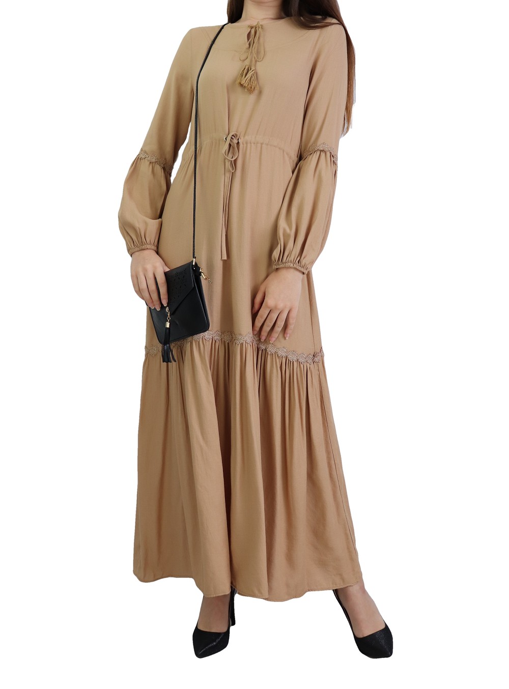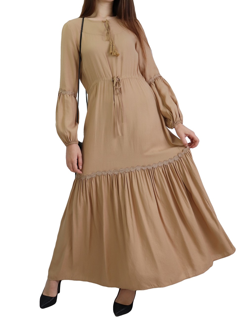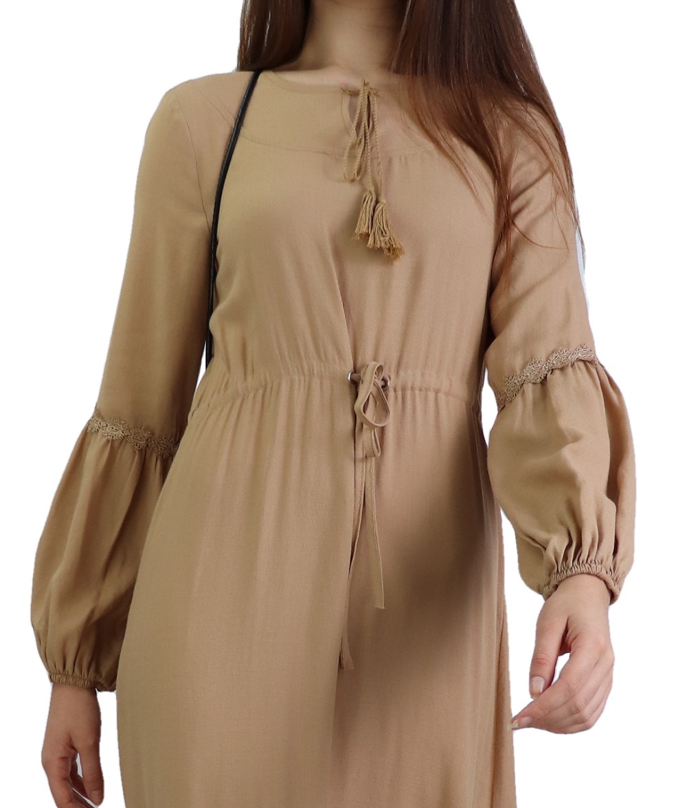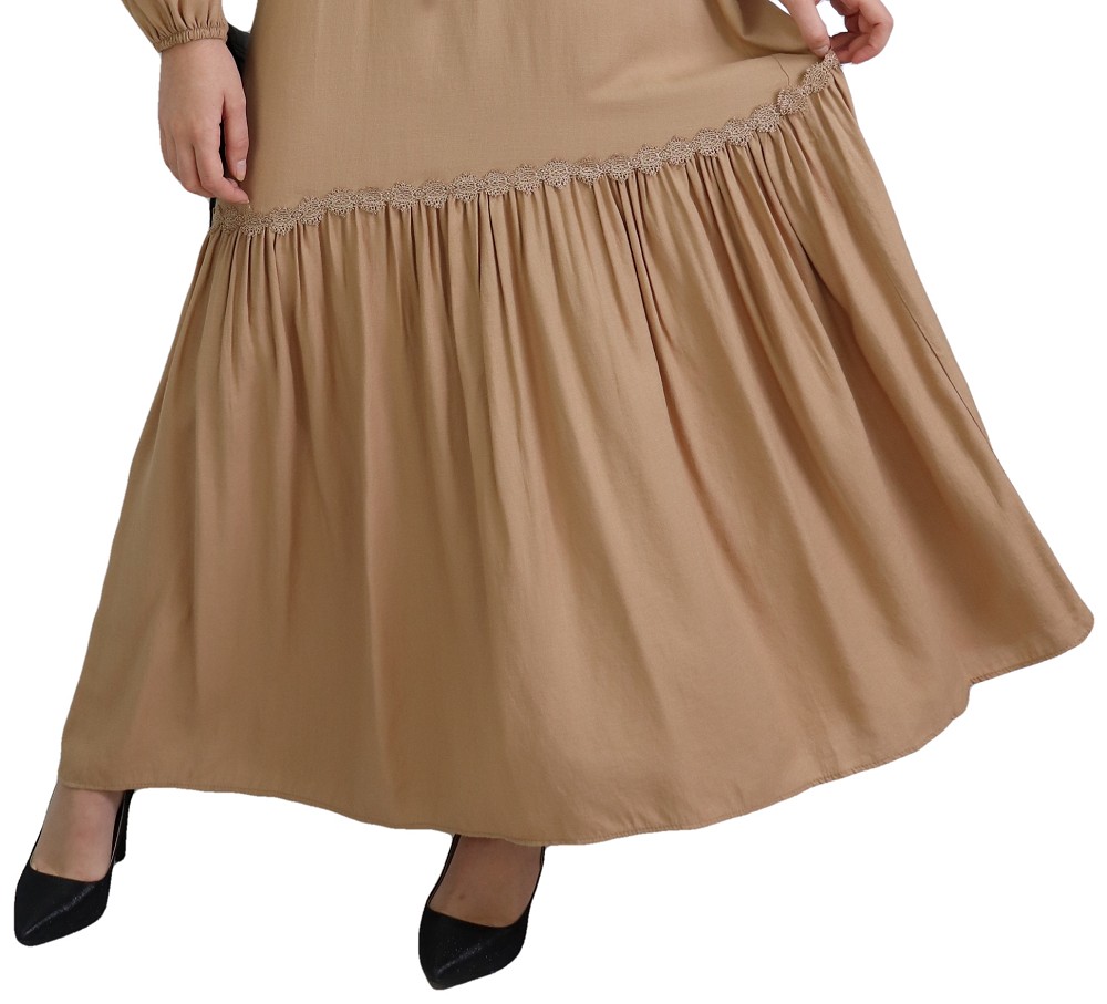 Robe longue bordée d’un volant pour femme (Vêtement style habillé pour hijab) - Couleur kaki - REF. 35191 (26.00 €) - En Promotion à 19.90 €