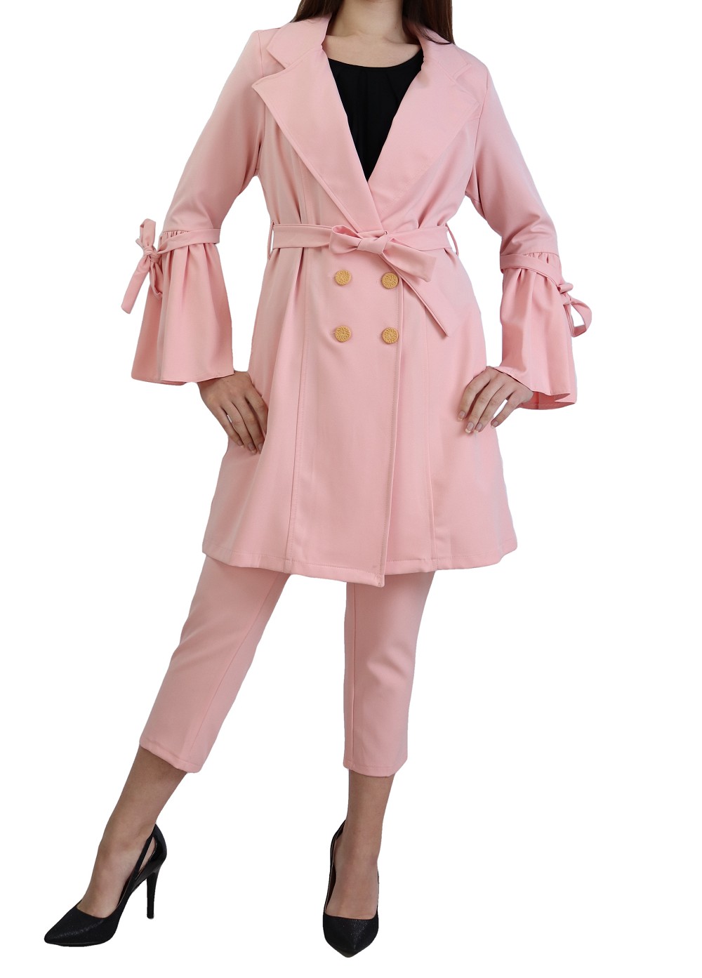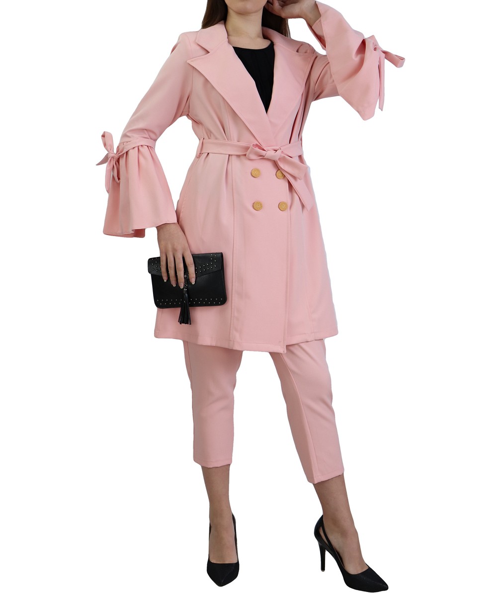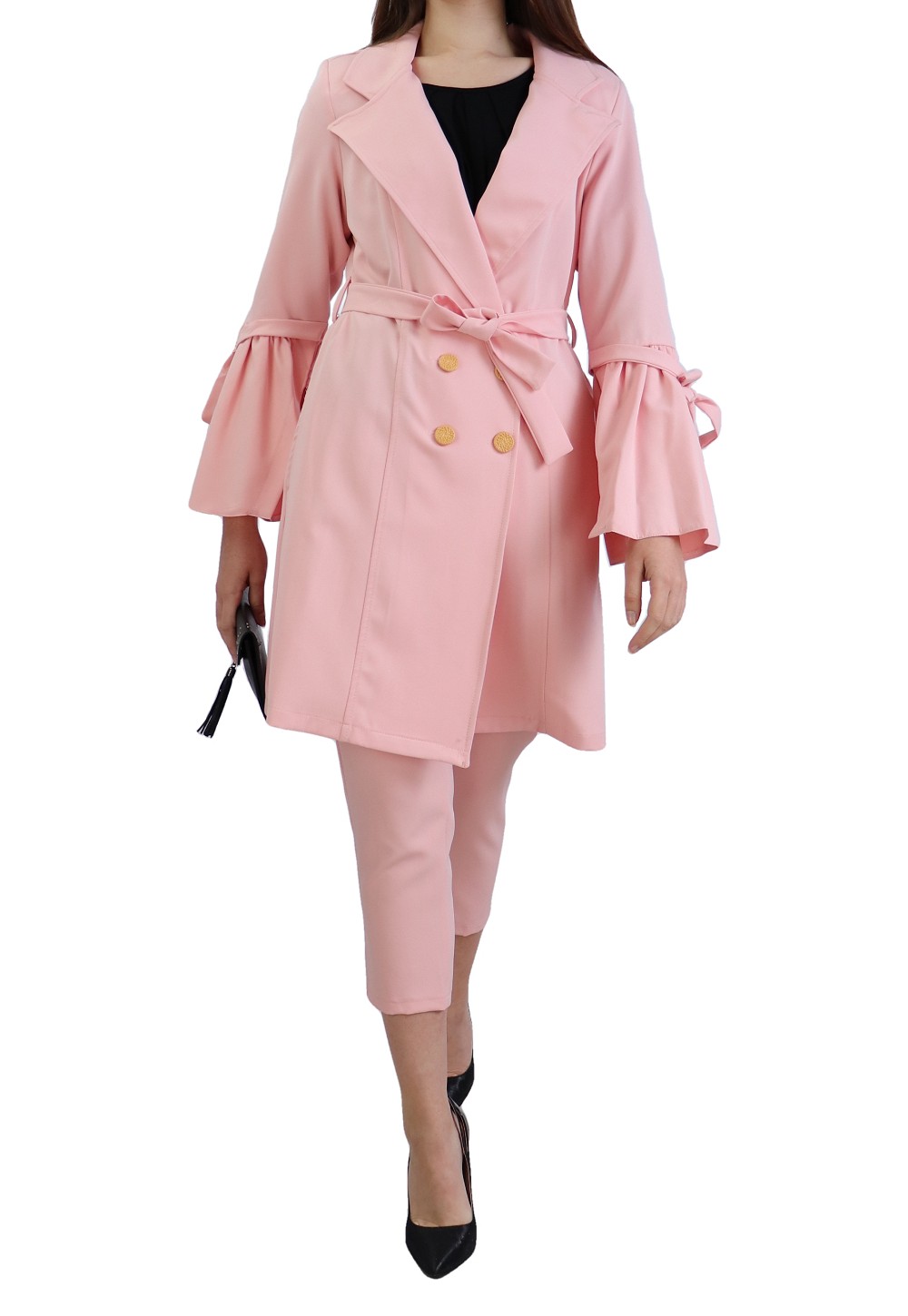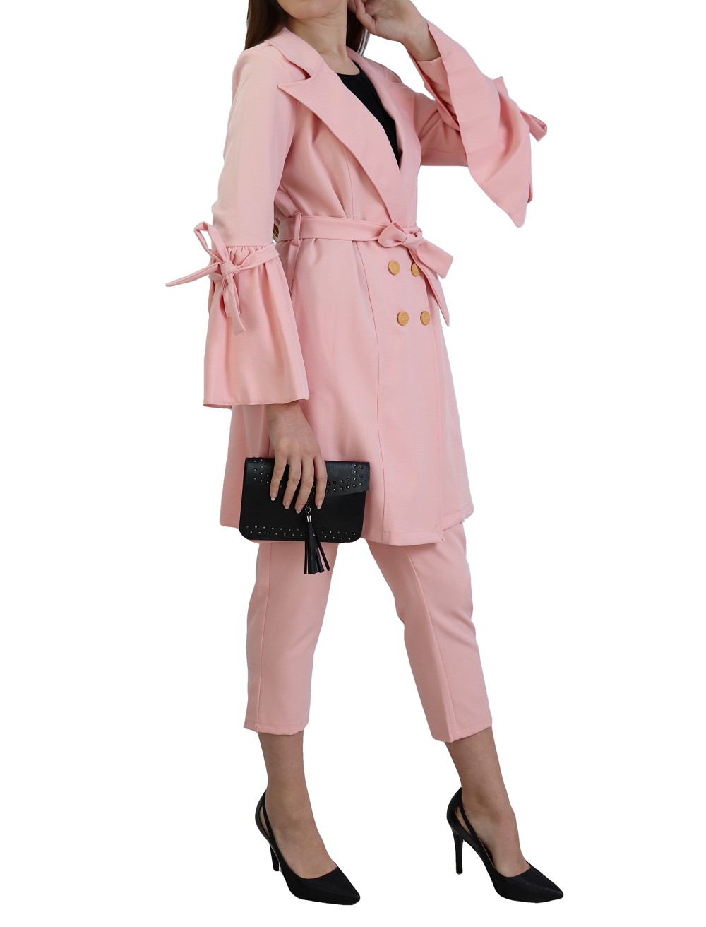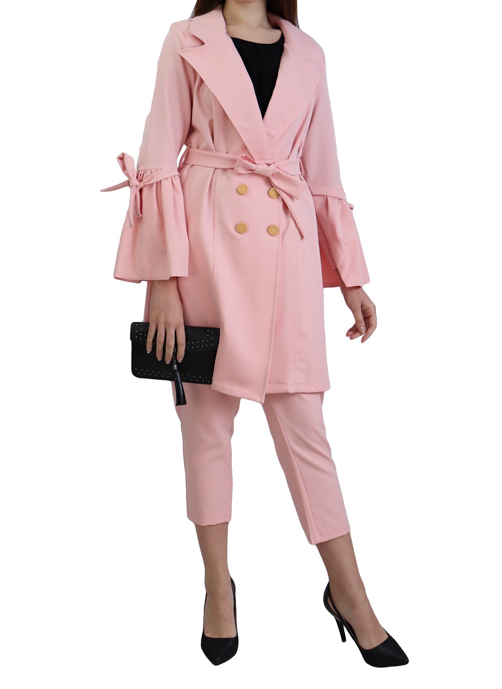 - Blazer : Tissu extensible avec revers classique et boutons beige. Ce modèle présente des poches latérale. Avec ses manches longues évasées et sa ceinture assortie qui marque votre taille, coupe légèrement évasée. .