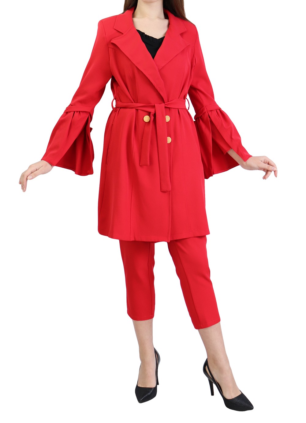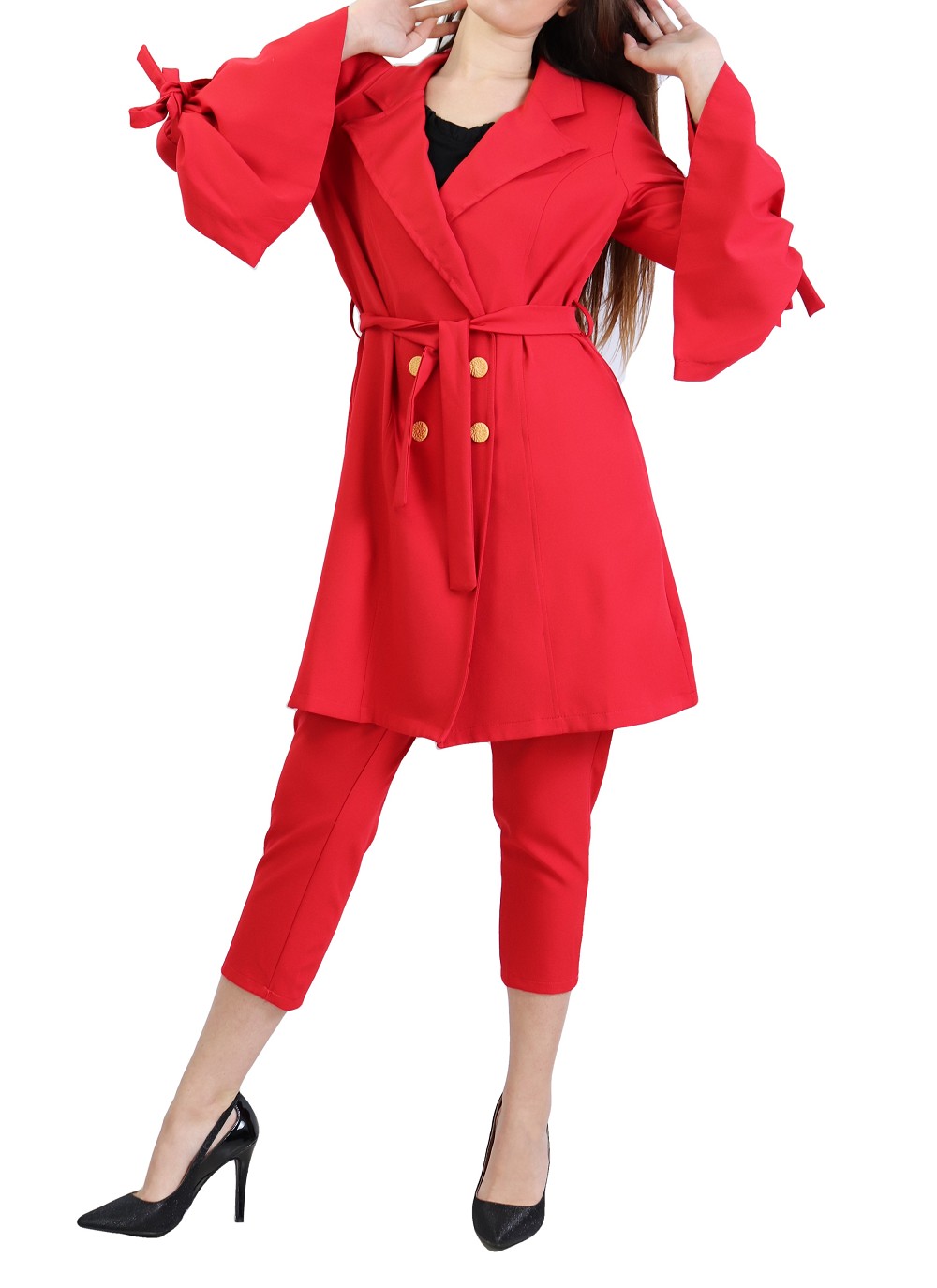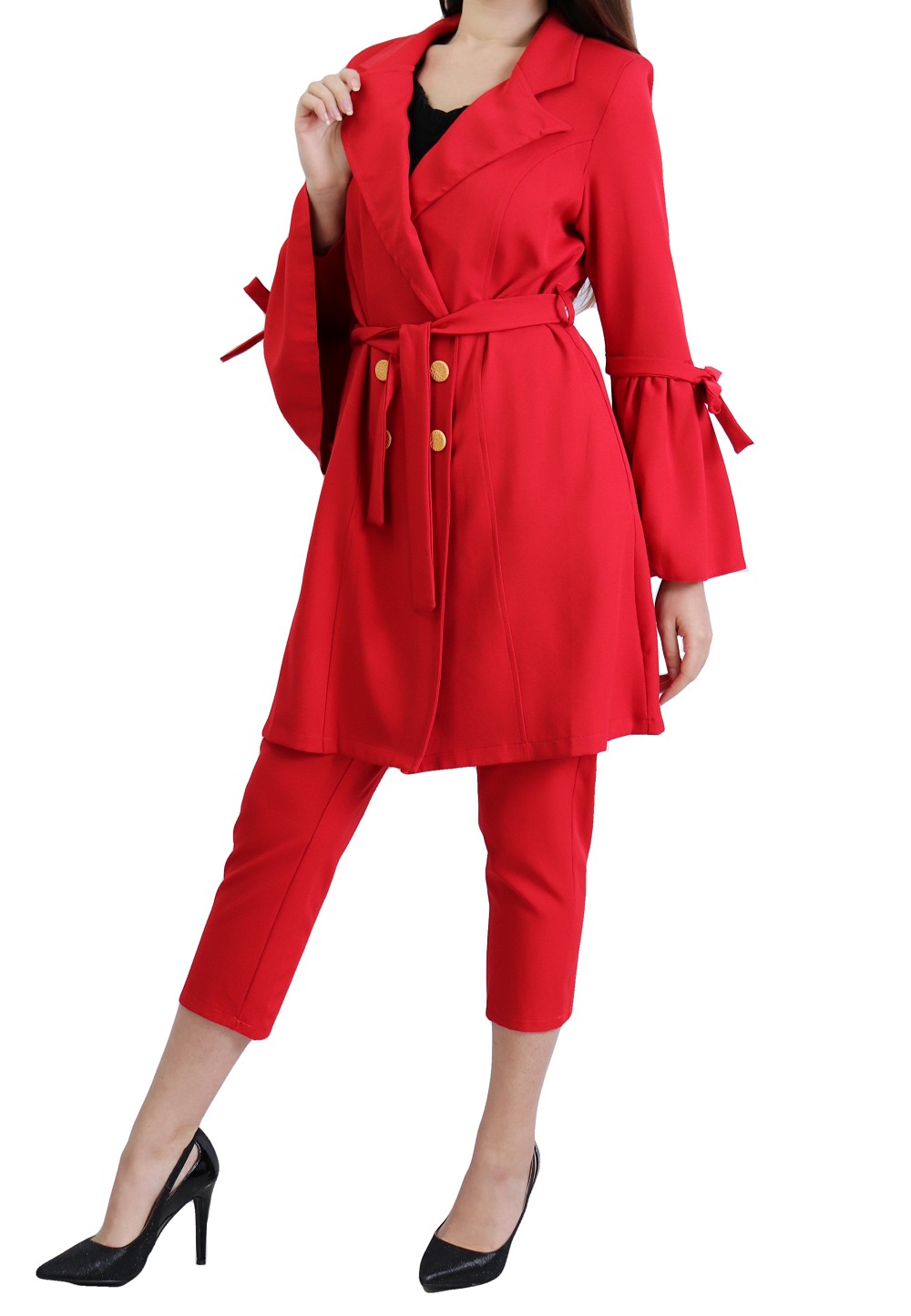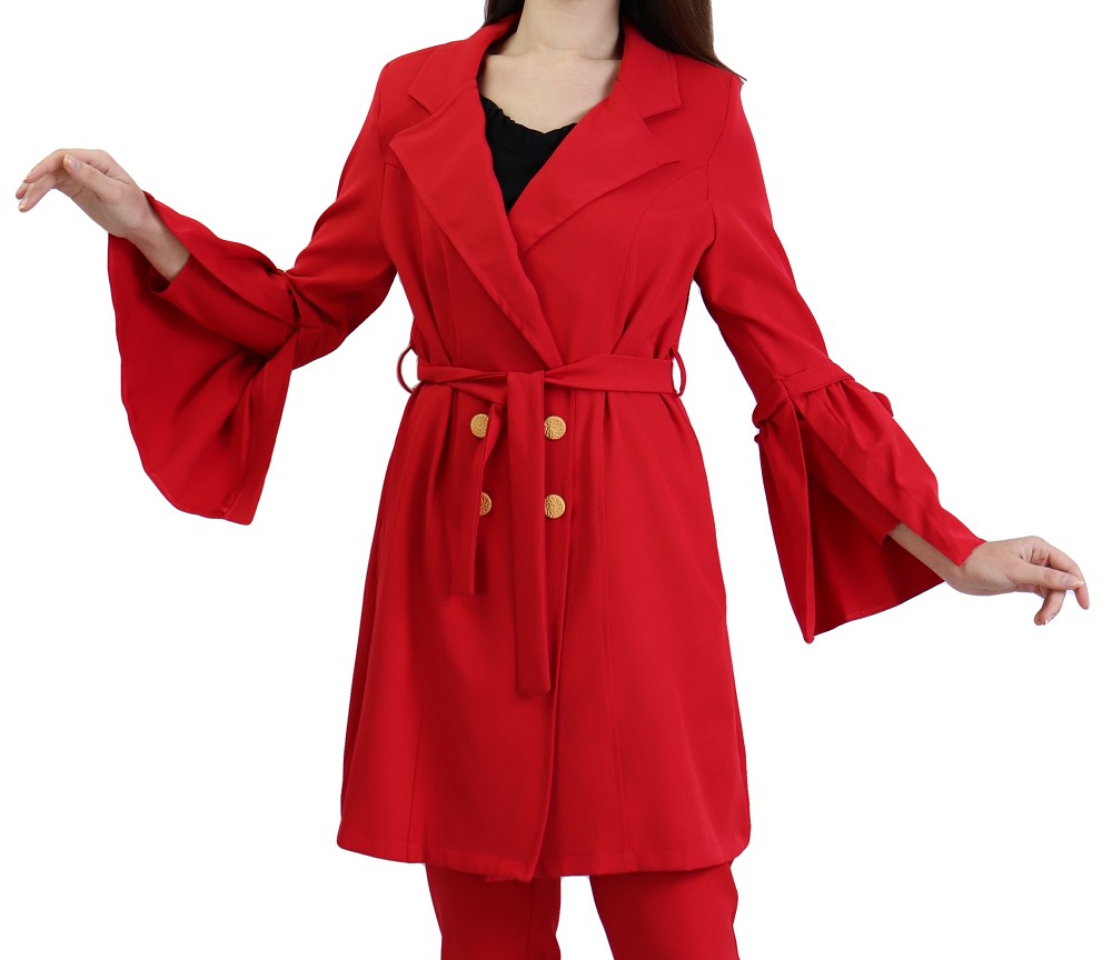 - Blazer : Tissu extensible avec revers classique et boutons beige. Ce modèle présente des poches latérale. Avec ses manches longues évasées et sa ceinture assortie qui marque votre taille, coupe légèrement évasée. .