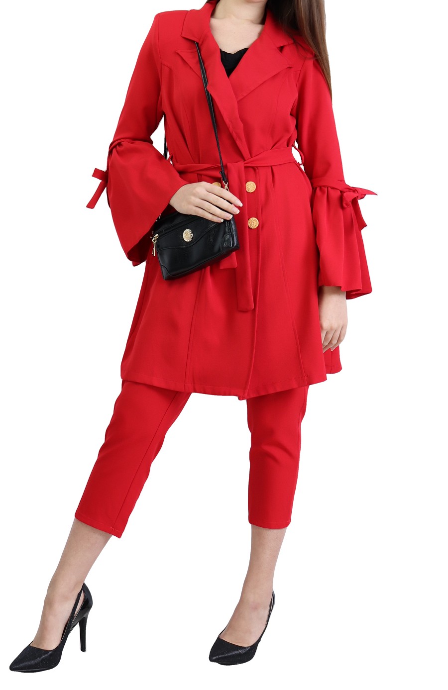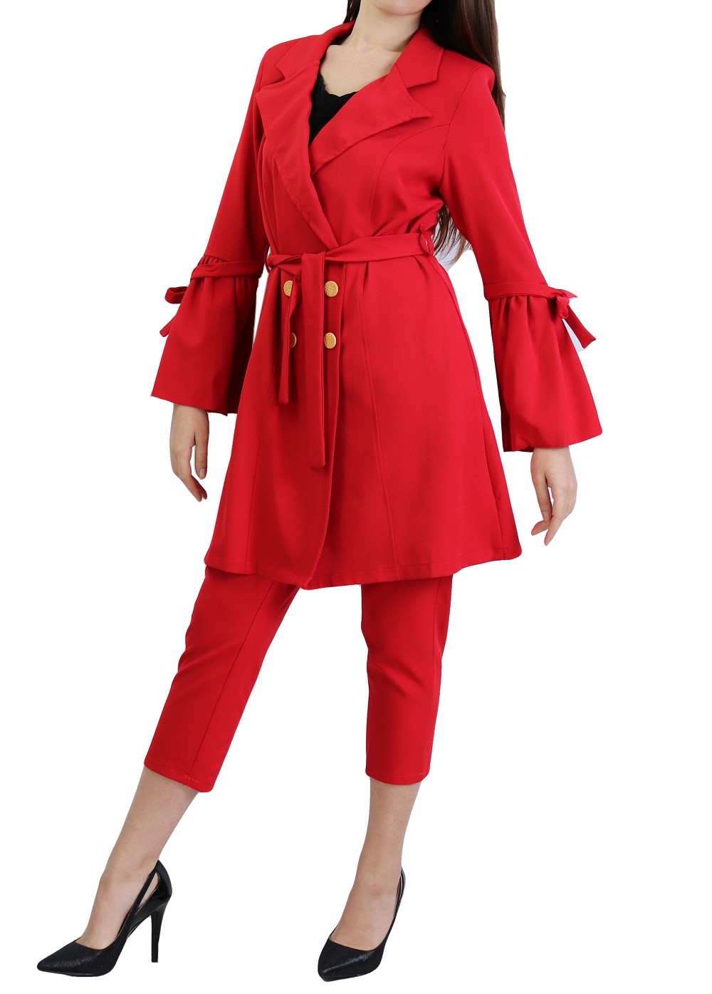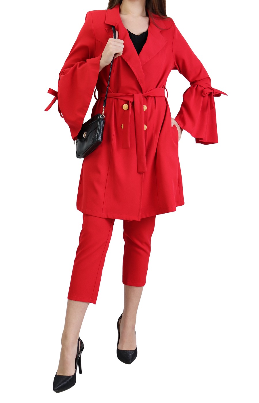 - Blazer : Tissu extensible avec revers classique et boutons beige. Ce modèle présente des poches latérale. Avec ses manches longues évasées et sa ceinture assortie qui marque votre taille, coupe légèrement évasée. .