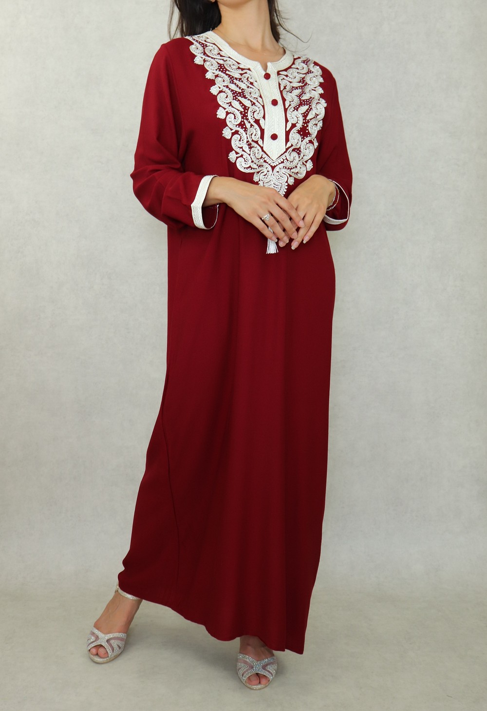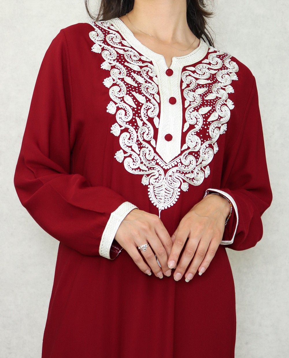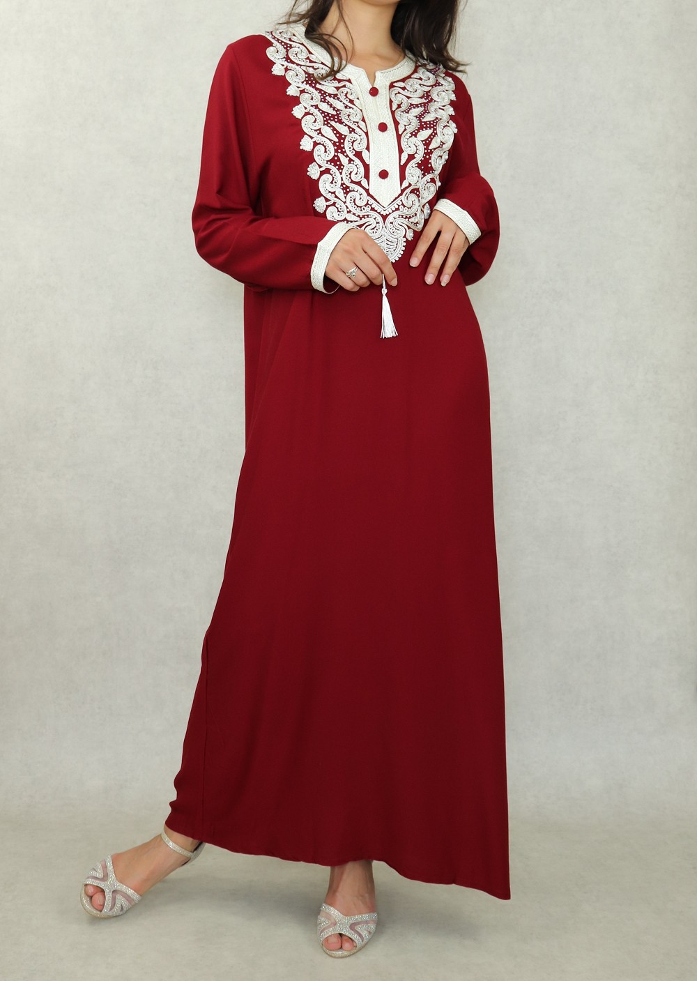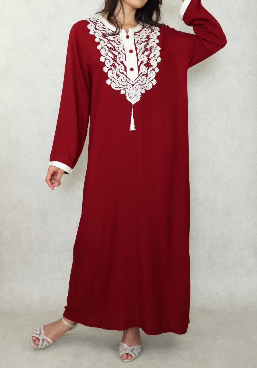 Robe orientale longue avec belles broderies en coton pour femme - Couleur rouge - REF. 33446 (25.00 €)