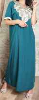 Robe orientale longue en coton avec belles broderies pour femme - Couleur Vert émeraude - REF. 33559 (25.00 €)